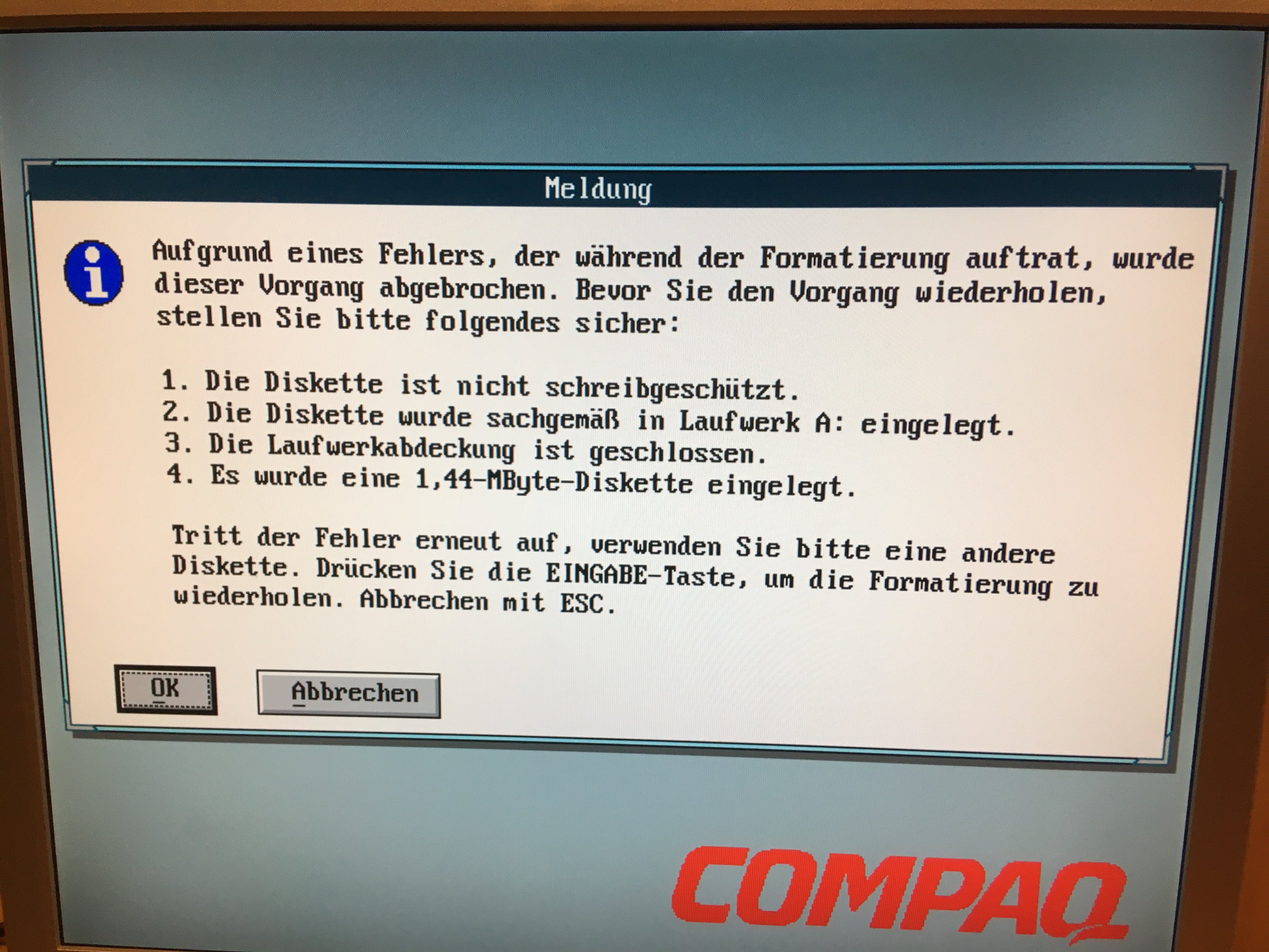 - Leider hat das nicht den gewünschten Erfolg gebracht, also habe ich mir Ersatz besorgt (Standard Floppy funktionieren zwar, aber die Gehäuseblende macht spezielle Compaq - Floppy notwendig
