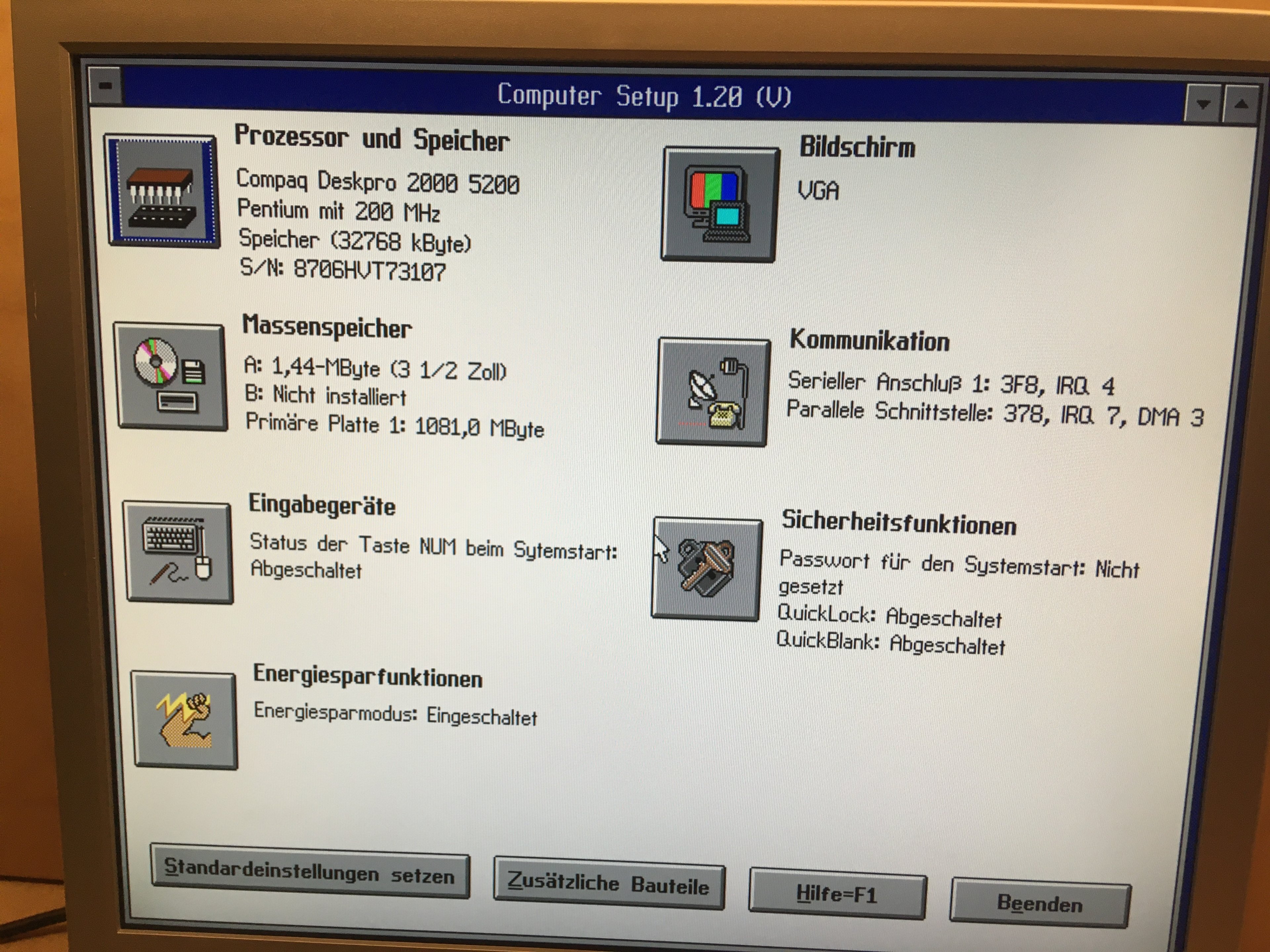 Ich bin mir noch nicht sicher, ob ich den PC mit Betriebsystem ausliefer. Ich muss schauen, das ich eine Lizenz dafür übrig habe! Danke nochmal @Bugsier 19 für das Compaq OEM Windows 95