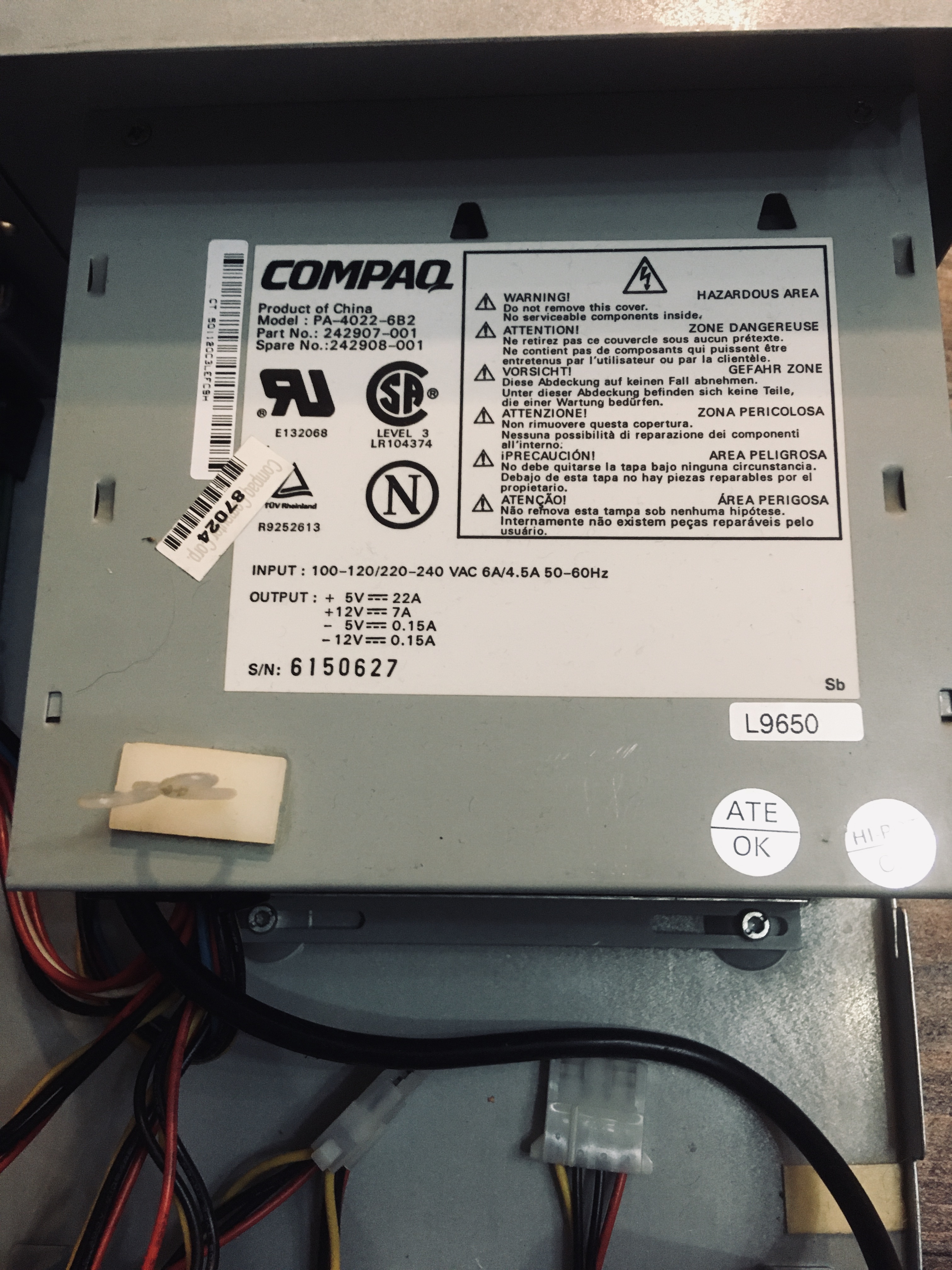 - Gehäuse: Compaq DeskPro (BJ96) vollständig, inkl. Kabel Schrauben und Blenden