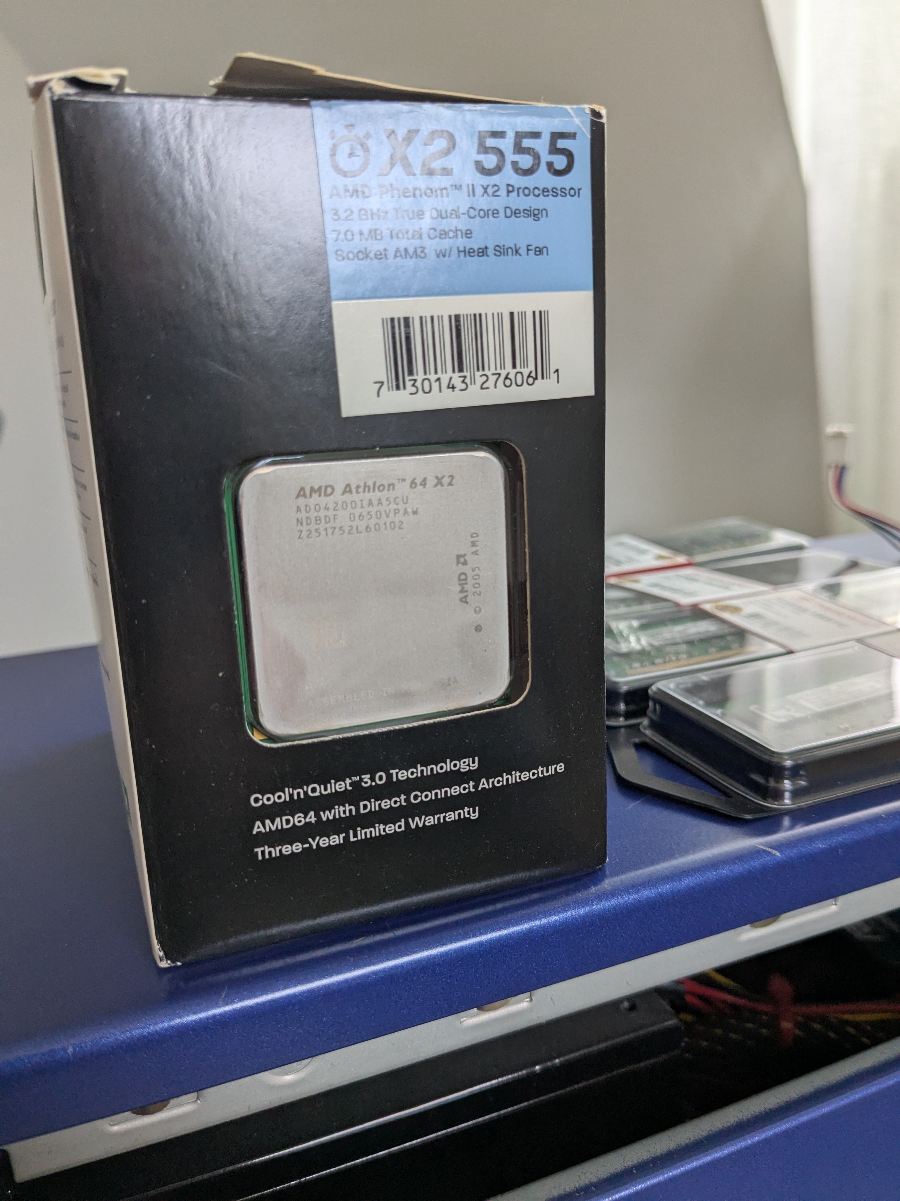 Board sieht man auf den Bildern, der Phenom ist eingebaut, der Athlon passt mWn auch in das Board und war da glaube ich vorher drin. Die GTX 460 ist eingebaut, die 7600GT ist passiv gekühlt, von der hatte ich damals aufgerüstet. Beim Gehäuse müsste noch alles komplett dabei sein, inkl. der Frontblende vom CD-LW und die Laufwerksschienen. Schlüssel muss ich allerdings noch suchen, da habe ich nur meinen gerade. NT ist meine ich 350 Watt, wie viel RAM weiß ich nicht, schätze mal 2 oder 4 GB.