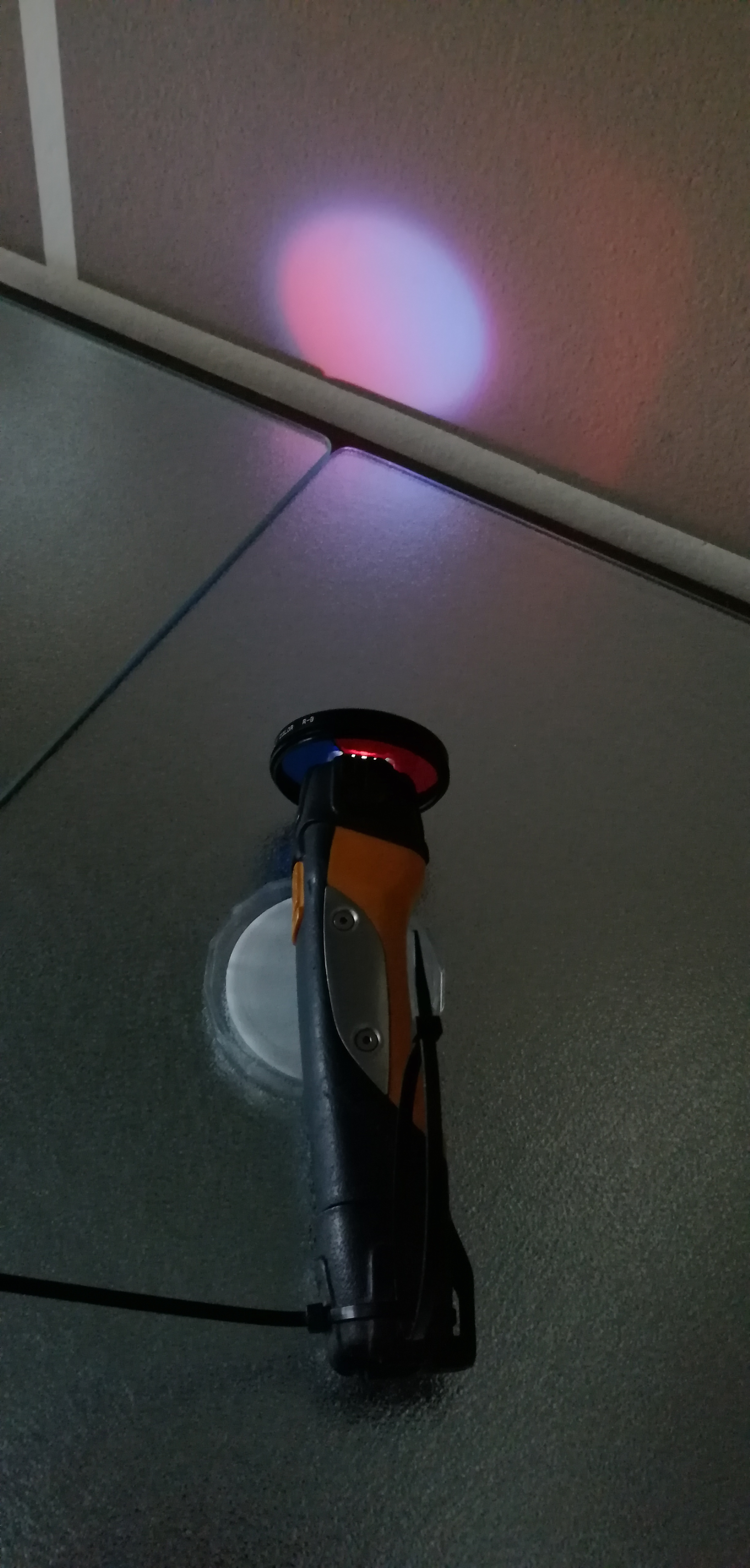Ich hab mit einem Farbfilter nochmals rumgespielt und diesen nicht vor das Objektiv geschnallt, sondern vor die Taschenlampe. Je dichter der Filter an dieser ist, umso fließender wird der Übergang (siehe kleine Bilder).