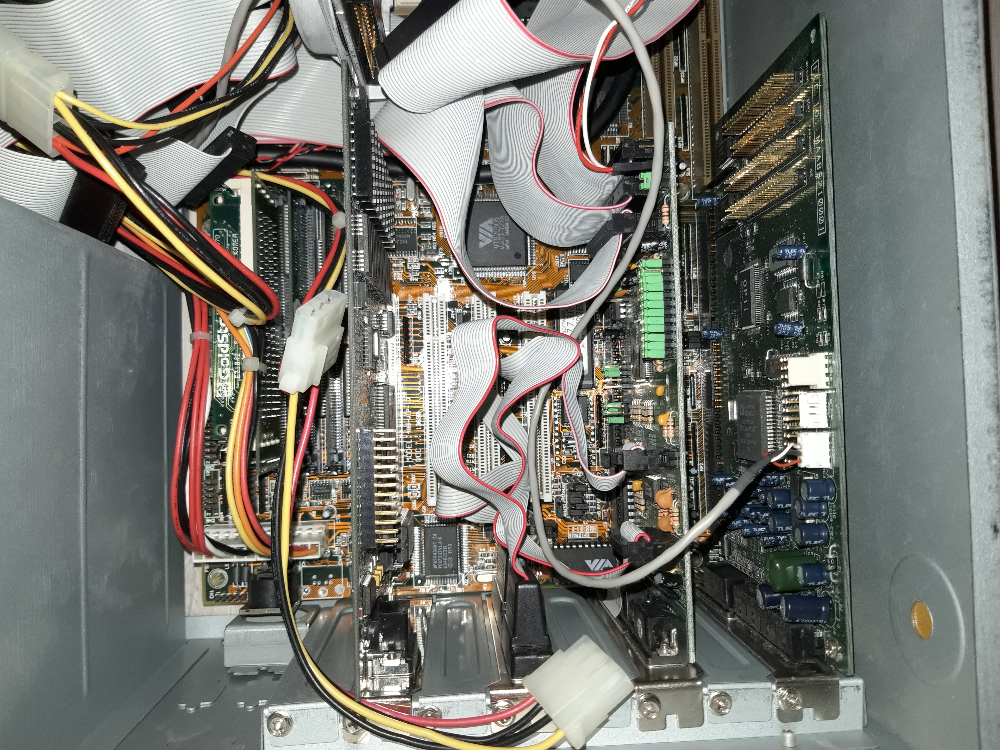 Mein Onkel hat vor etwa 25 Jahren einen PC aus Einzelkomponenten zusammengebaut. Dieser startet zwar, aber der Arbeitsspeicher wird mehrfach visuell hochgerechnet, danach war immer ein mechanisches Laden des Disketten- oder CD-Laufwerks zu hören, welches mittlerweile nicht mehr erfolgt, sondern das Hochfahren wie stehen bleibt. Bitte entschuldigt die leienhaften Formulierungen.