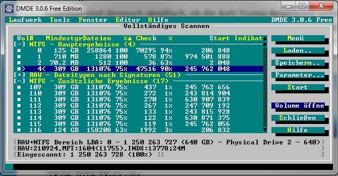 Testdisk benennt als Dateisystem des nicht zugeteilten Bereiches "Linux". Der Versuch dies auf NTFS zu ändern hat mich nicht weitergebracht.