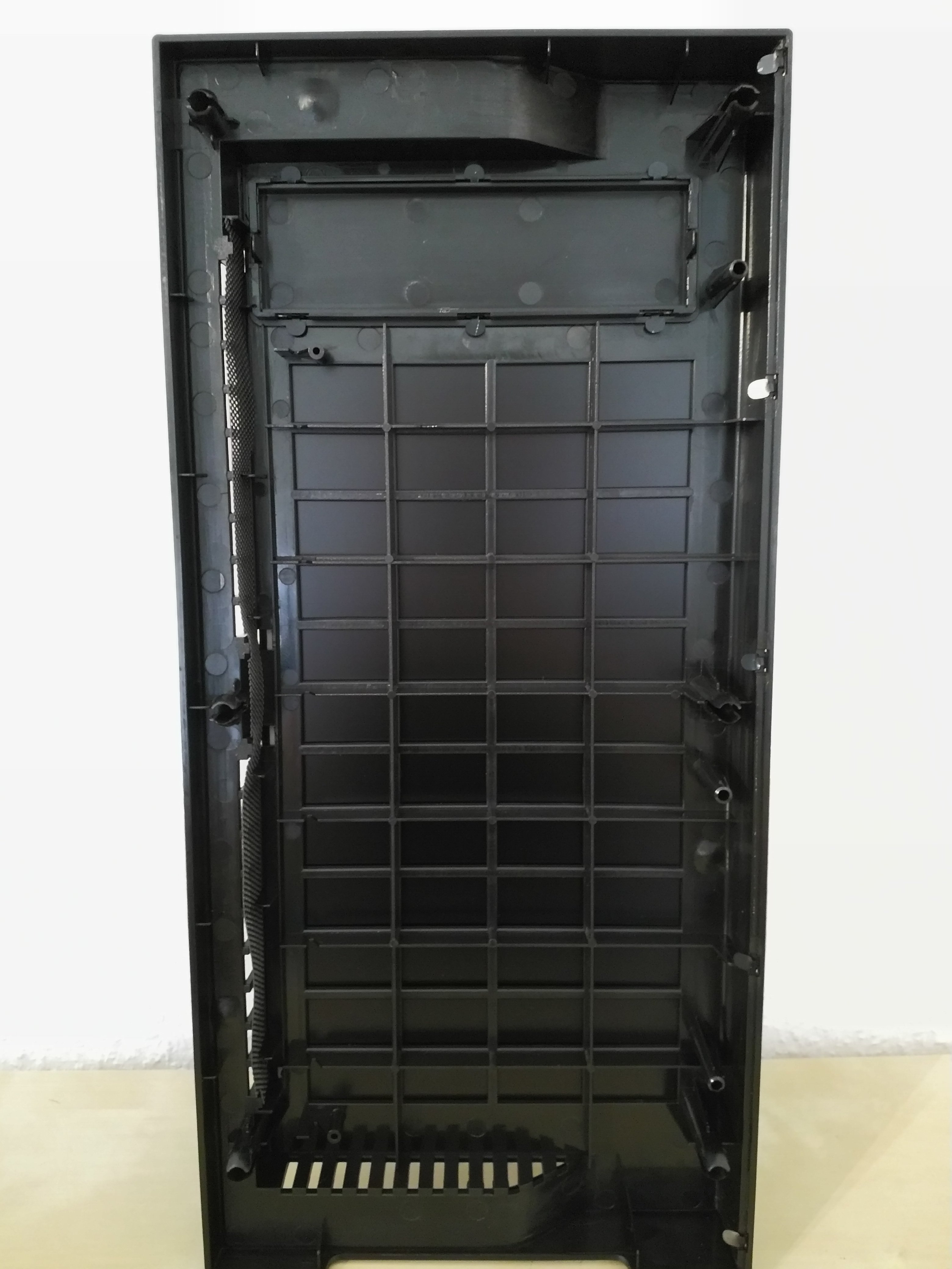 Bei einem Preis von ca. 40€ kann es aber nicht nur positive Eigenschaften geben. Abstriche hat Chieftec bei der nicht vorhandenen Festplattenentkopplung und der kompletten Abwesenheit von vorinstallierten Lüftern gemacht. Eine weitere negative Eigenschaft des Gehäuses ist die nicht ganz durchdachte Staubfilterlösung. Die Filter sind recht grob und teilweise in der Front gar nicht vorhanden. Zudem sind die Lüfteröffnungen im Frontteil relativ klein und nur einseitig. Dadurch verschlechterten sich Airflow bzw. Temperaturen merkbar.