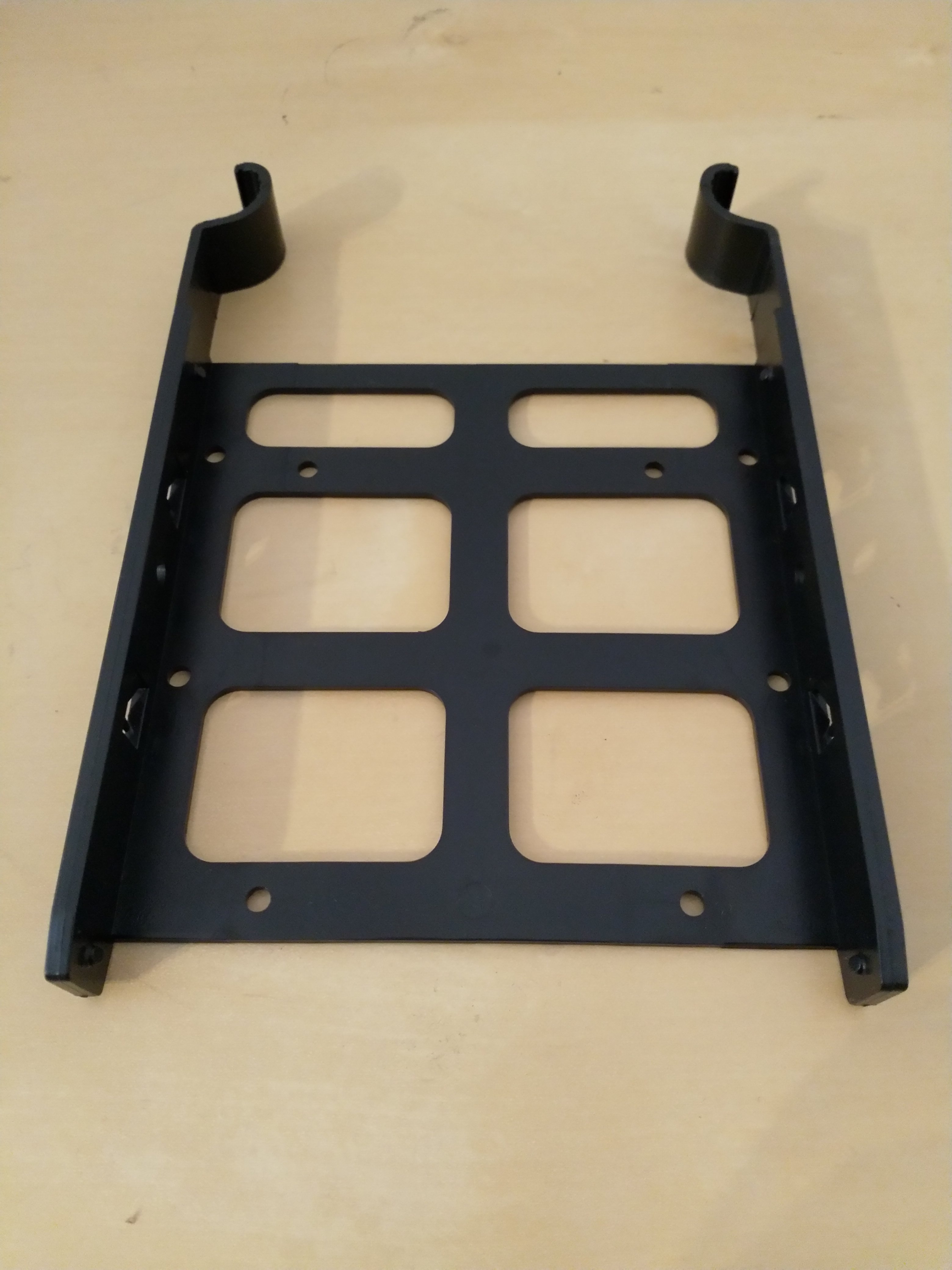 Die Montage von 3,5“-Festplatten erfordert durch die werkzeuglose Befestigung mittels Kunststoffrahmen nicht viel Arbeit. Allerdings wirkt die HDD nach dem Einbau in den Rahmen nicht wirklich stabil. Hier kann man aber mit einer Schraube Abhilfe schaffen. Der Einbau von 2,5“-Geräten in den dafür vorgesehenen Halterungen erfolgt ebenfalls werkzeuglos und konnte sehr einfach durchgeführt werden. Da die Kunststoffrahmen (3,5“ und 2,5“) leider über keine Art von Entkopplung verfügen, werden zumindest von 3,5“-Datenträgern gewisse Schwingungen an den Rest des Gehäuses übertragen. Das führt zu einem leichten Brummen im Betrieb. Ein weiterer Nachteil der Festplattenschlitten sind die Bohrungen für 2,5“-Geräte. Diese sind so weit nach hinten gesetzt, dass die Kontakte des Datenträgers nicht über den Schlitten herausragen. Das führt, in Abhängigkeit der Sata-Stecker des Netzteil, dazu, dass das Kabel eventuell nicht eingesteckt werden kann, wenn die SSD komplett verschraubt ist.