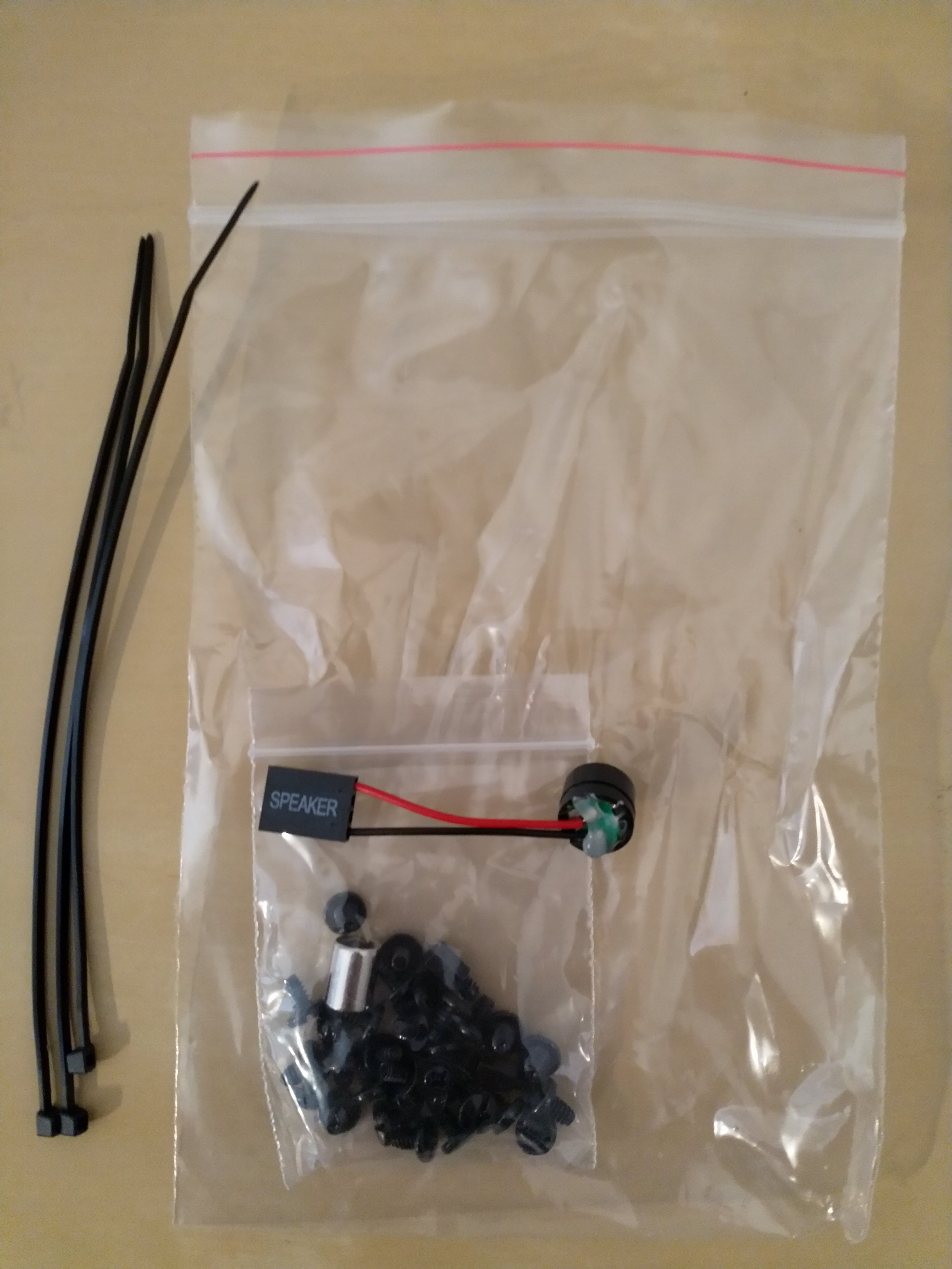 Im Lieferumfang befinden sich drei lange Kabelbinder, ein Tool zur Montage der Abstandshalter, ein Mainboard-Speaker, sowie alle wichtigen Schrauben die zur Montage benötigt werden.