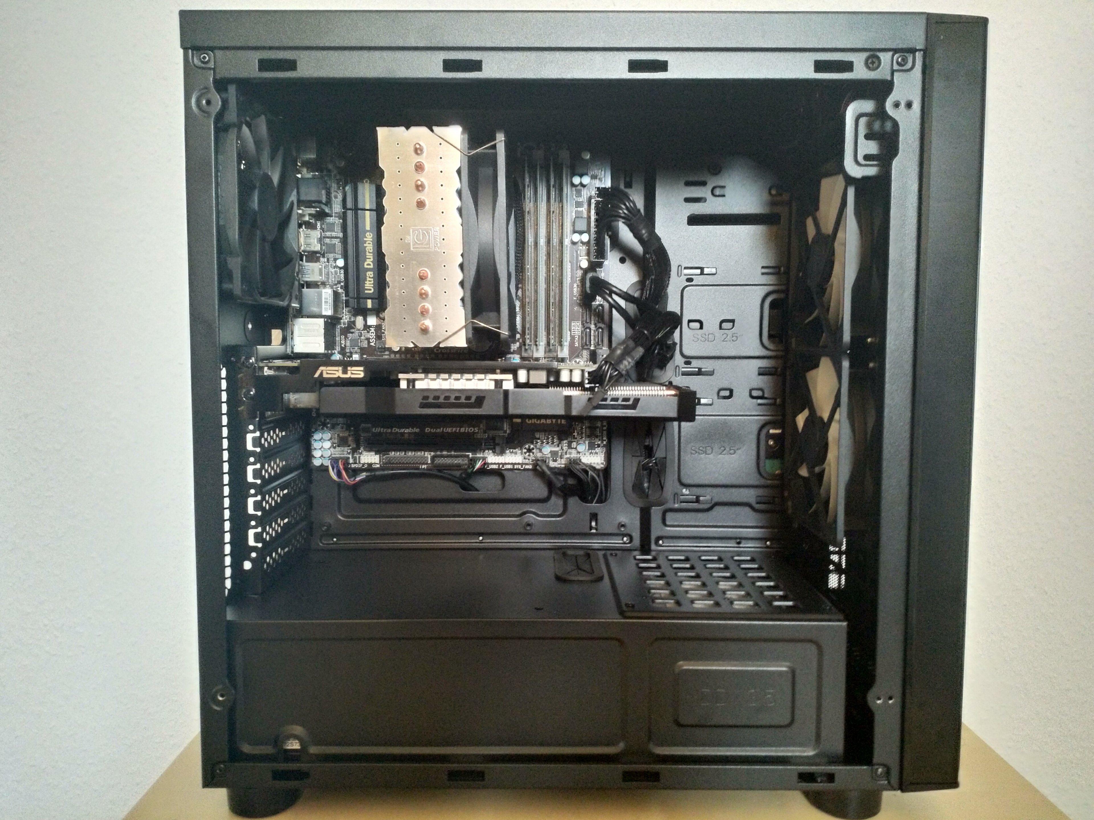 Durch den offenen Aufbau bietet das Gehäuse viel Platz für Hardware. Auch mit großen Händen waren Zusammenbau und Verkabelung sehr schnell erledigt.
