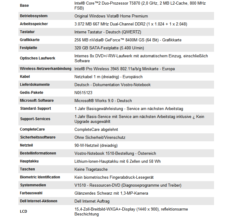 Habe heute mein Vostro 1510 wie geplant erhalten.