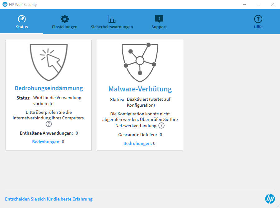 Als Sicherheitssoftware ist "HP Wolf Security" installiert. Die Software nisted sich ungefragt in Mozilla Firefox ein und enthält einen Werbeblocker, den ich nirgendwo in den Optionen abschalten konnte. Auf Computerbase wurden dann entsprechend die grauen Adblock Banner angezeigt. Wolf Security nervt zusätzlich mit Warnmeldungen, z.B. beim Öffnen von heruntergeladenen Dateien.