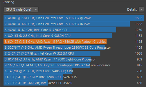 | CPU | AMD Ryzen 5 PRO 4650GE, 6C/12T, 3,3-4,2GHz |