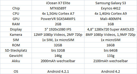 Ich habe bewusst das S3 zum Vergleich genommen, spielen beide Handys in der Preisklasse von ca. 300€.
