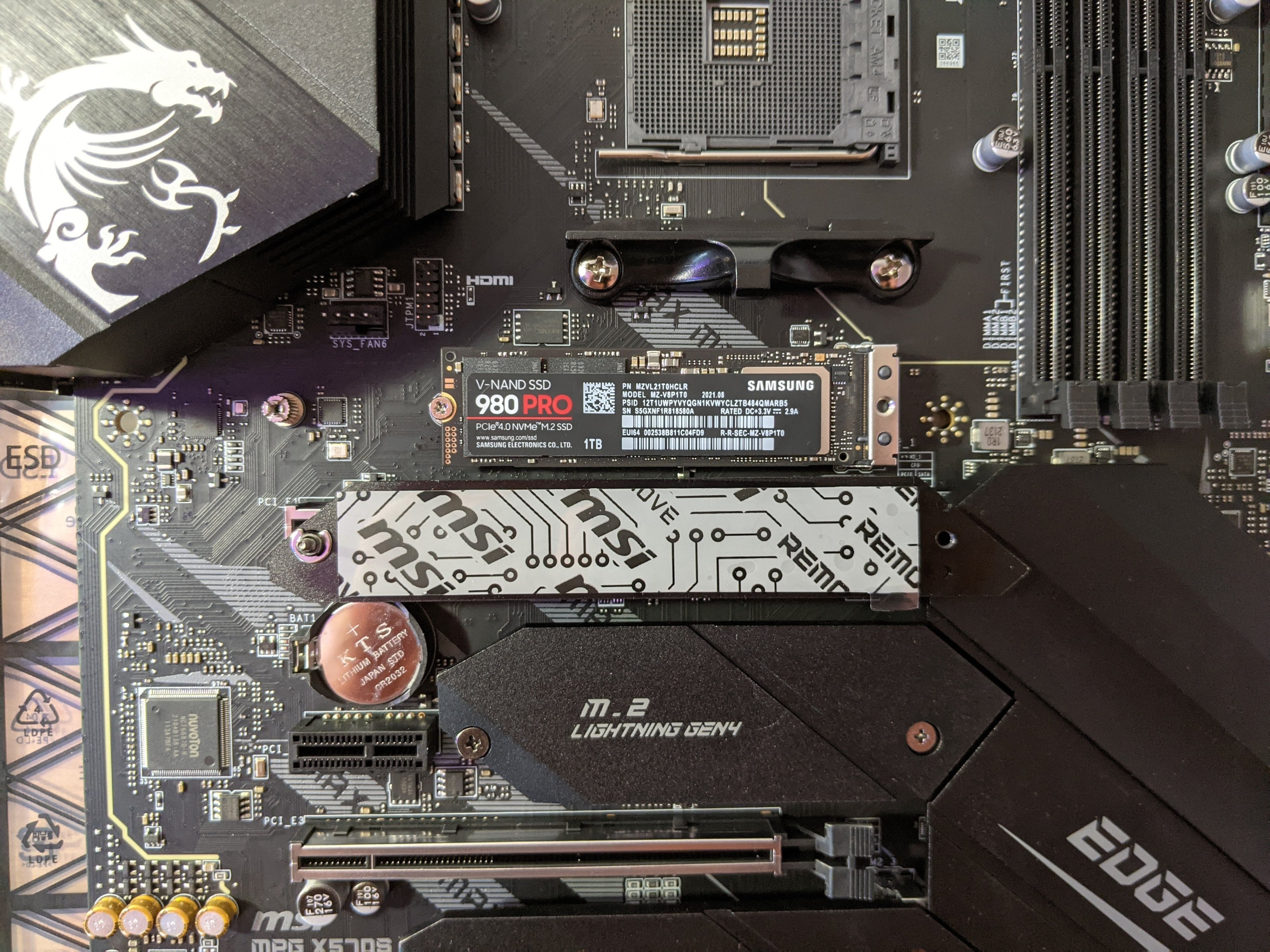 Aufgrund der nicht vorhanden PCIe 4.0 Schnittstelle des X470 Boards kann ich in Bezug auf die erreichten Schreib-/Lesegeschwindigkeiten nur meine Samsung 970 Evo gegentesten, jedoch habe ich auch die Samsung 980 Pro im M2_1 Slot auf dem MSI X570S getestet.