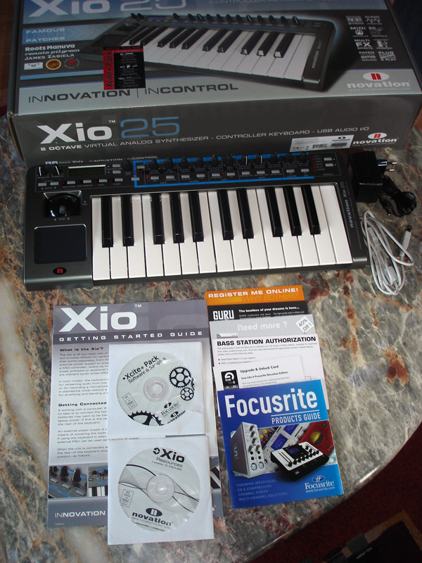Der Novation Xio 25 ist ein kleiner, virtuell-analoger, Synthesizer der zusätzlich noch als Midi-Controller und Audio-Interface genutzt werden kann.