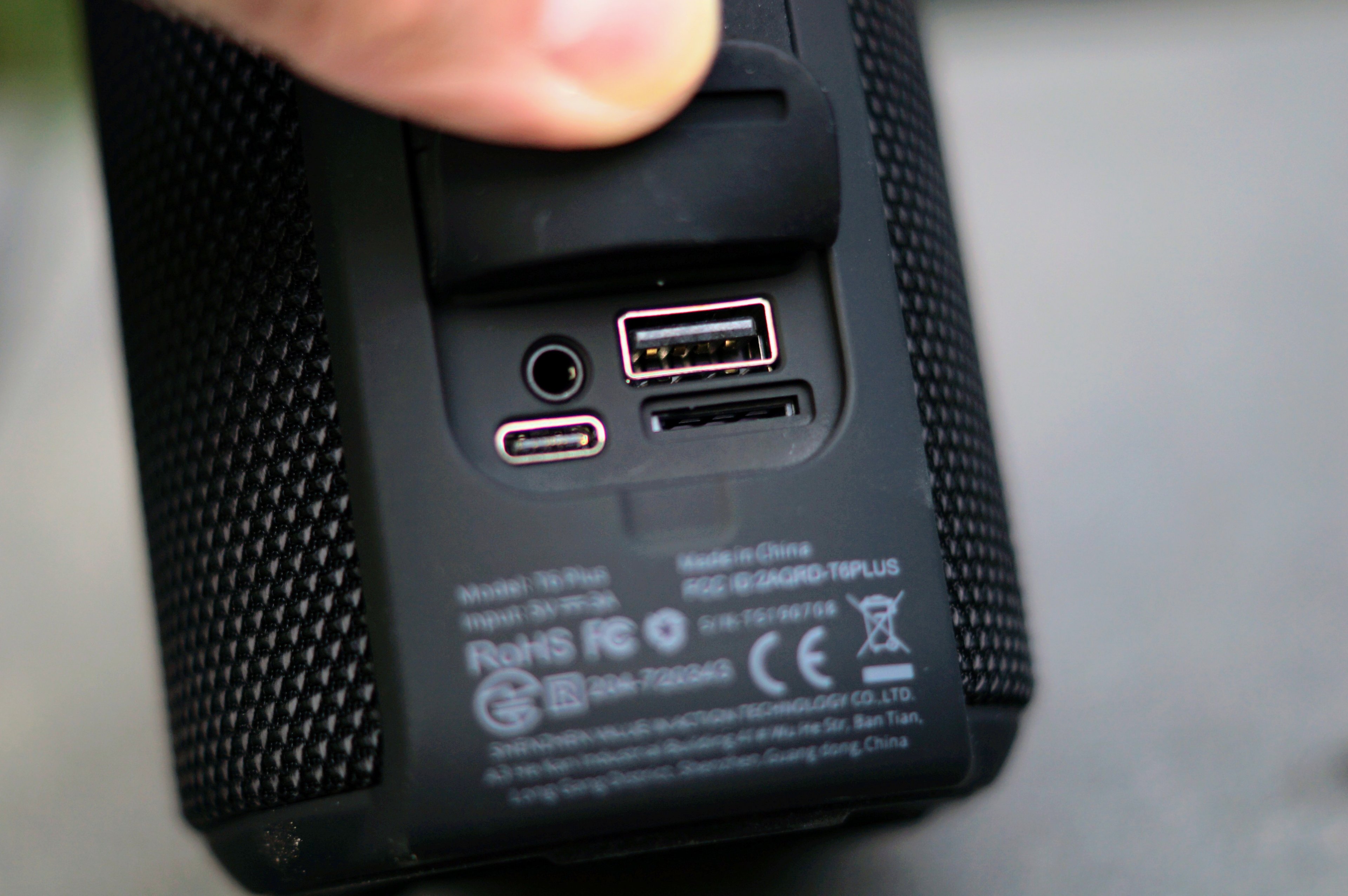 Die Bedienung gestaltet sich durch beschriftete Knöpfe bei allen Lautsprechern einfach. Tribit teilt die Knöpfe auf und platziert die Lautstärke- und Play-Tasten auf der Frontseite. Die Power- / Bluetooth- und Equalizer-Taste (XBass) finden zusammen mit der Ladestandsanzeige auf der Rückseite ihren Platz. Earfun setzt die Knöpfe auf die Oberseite, Tronsmart auf die Rückseite und ergänzt die Standardknöpfe noch um einen weiteren, um die Eingangsquelle umzuschalten. Denn hier können zu einem AUX-In auch microSD-Karten oder auch USB Sticks als Musikquelle gewählt werden. Das ist mMn. ein geniales Feature, so muss man nicht immer ein Handy dabei haben und kann seine Musik genießen. Zudem kann der Tronsmart T6 Plus auch als Powerbank herhalten und leeren Handys neuen Saft verleihen. Mit allen Lautsprechern ist aber die Steuerung des Handys möglich, bzw. der Musikwiedergabe. Play / Pause und das Weiterschalten der Lieder funktioniert problemlos.