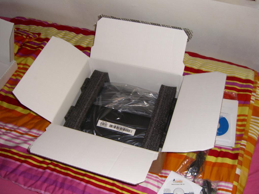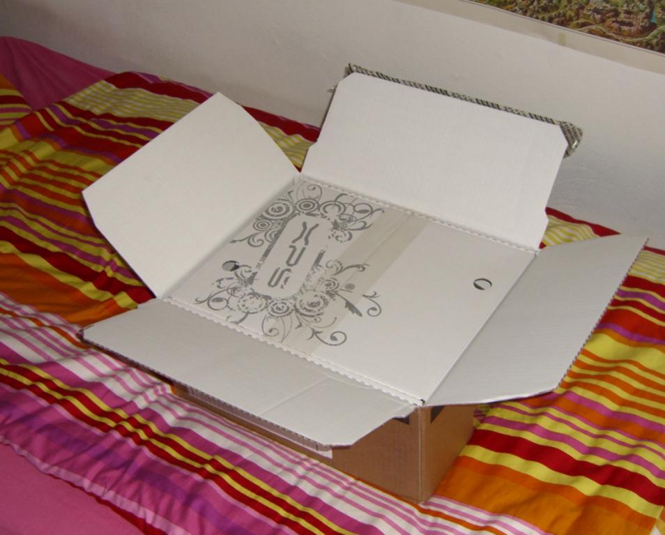 Nobebook kam per UPS in einem schlichten Karton. Darin war dann oben die Schachtel mit dem Zubehör.