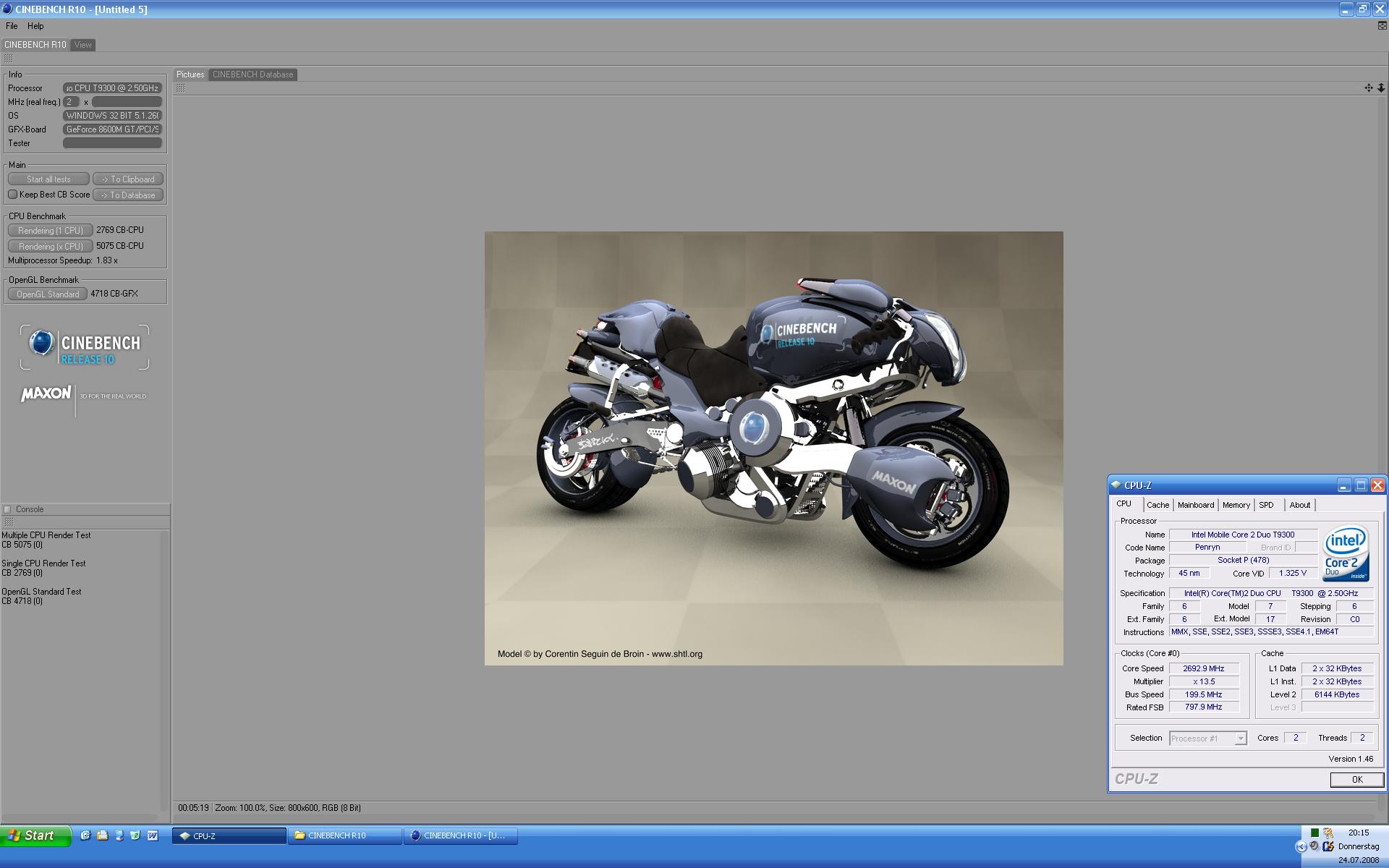 Cinebench R10: Single CPU 2769 | x-CPU 5075 | OpenGL 4718