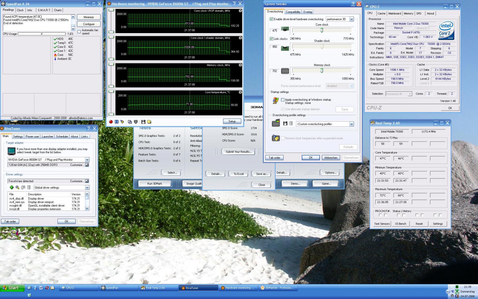 Sicherlich dürfte die Grafikkarte gerne auch doppelt so schnell sein, da ich bei diesem Notebook jedoch den Fokus auf Anwendungsperformance bei gleichzeitig einigermaßen akzeptablen Akkulaufzeiten und nicht auf Gaming-Performance gelegt habe, bin ich absolut zufrieden mit dem, was die 8600GT leistet. Und für alles andere hab ich sowieso meinen Home PC (siehe sig).