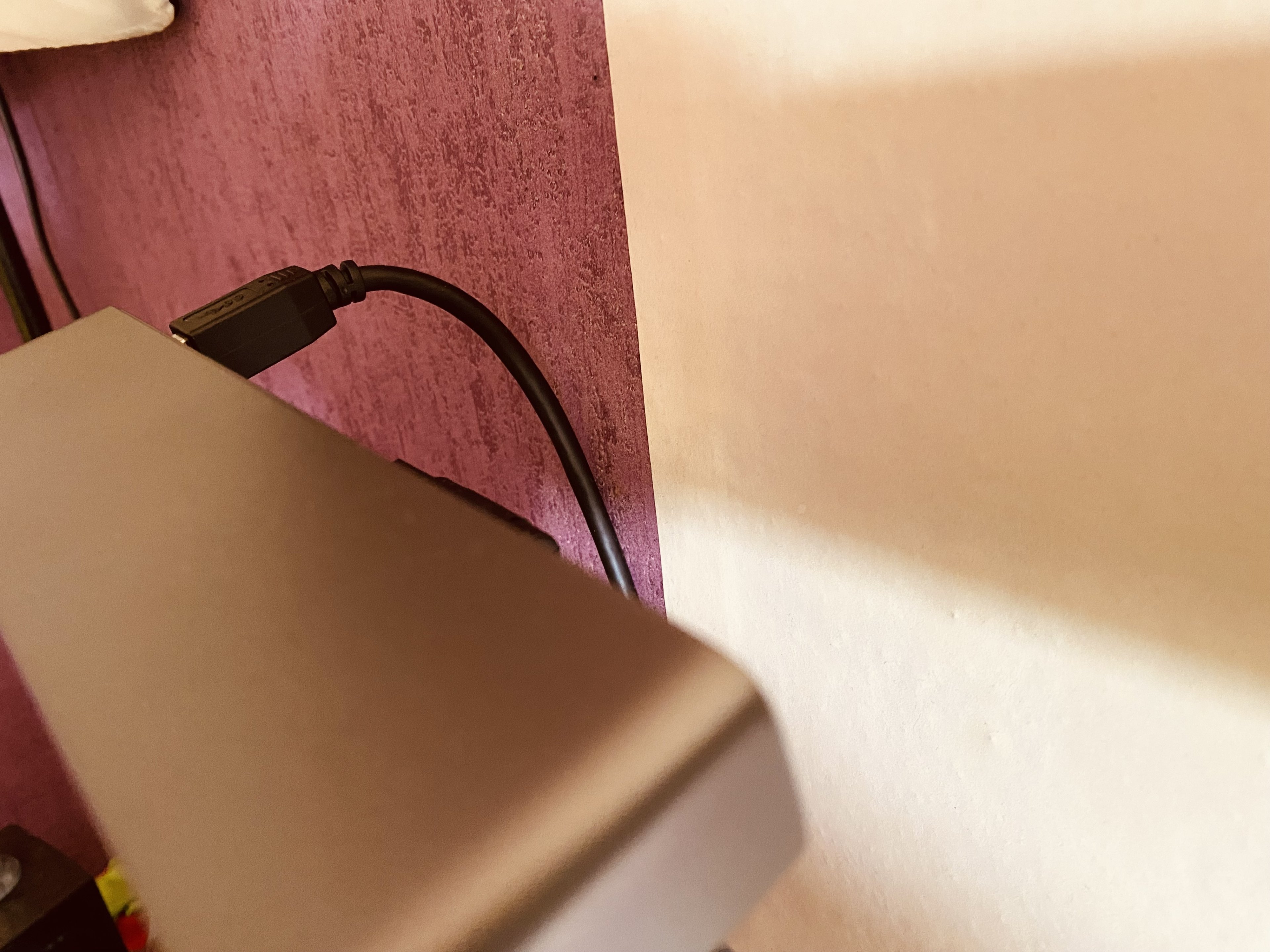 ----> Das Kabel drückt schon ganz gut gegen die Wand.Wer also zwischen Screen und Wand weniger als 10 CM Platz hat, könnte Schwierigkeiten bekommen.