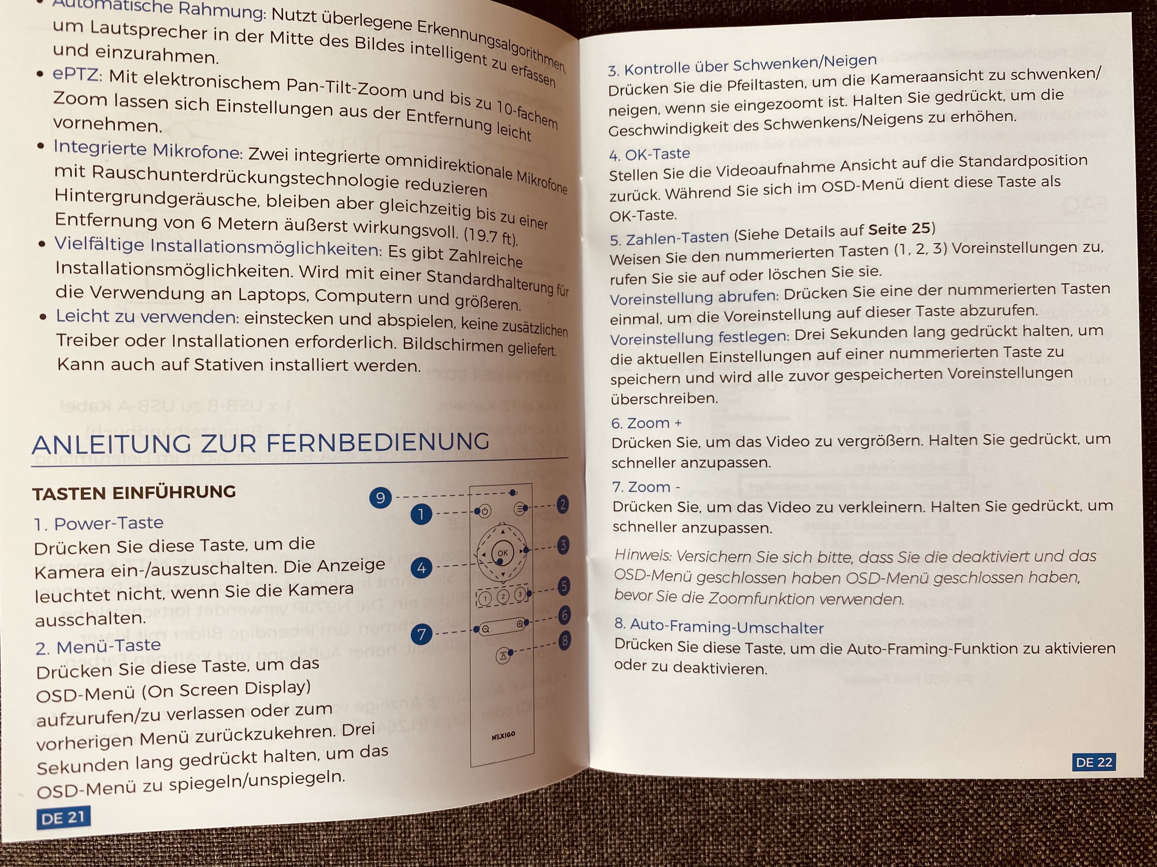 hier möchte ich euch die Nexigo N970P e-PTZ-Webcam vorstellen.