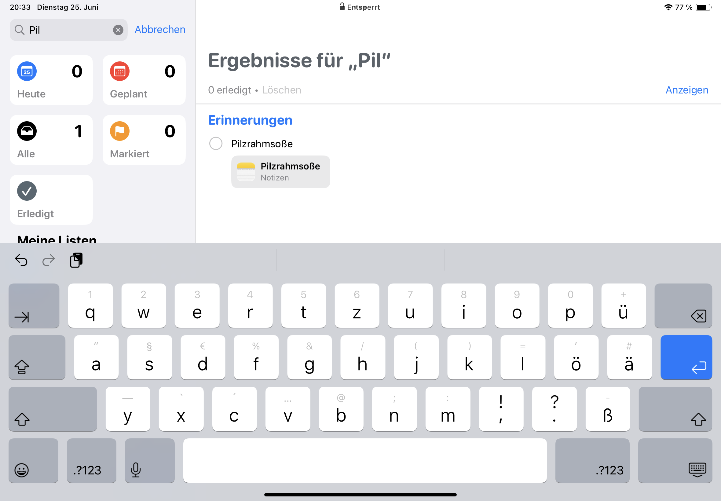 Ich hab mir ein paar Rezepte in Apple eigne Notiz app geschrieben, mit den Zutaten, die ich für das Rezept einkaufen muss.