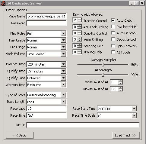 Problem ist, wenn ich vom Server oder per Vote im Spiel von Praktice zum Quali weiterschalten will, startet er immer gleich das Rennen. Er überspringt quasi das Quali und Warmup, obwohl ich in den Optionen des Server 30Min Qualizeit und 30Min Warmup eingestellt habe.