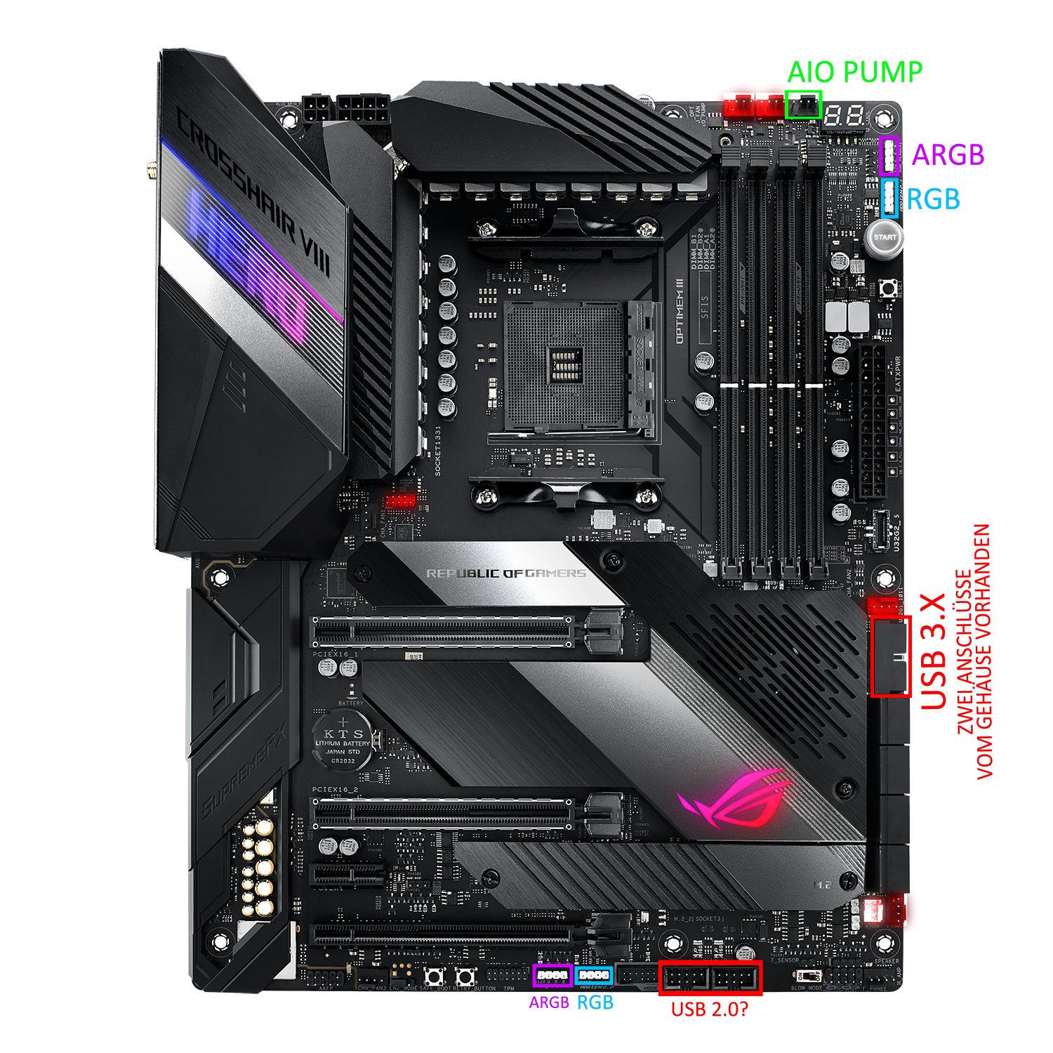Crosshair VIII Hero - 2x 3 Pin RGB Anschluss intern - 2x 4 Pin ARGB intern.