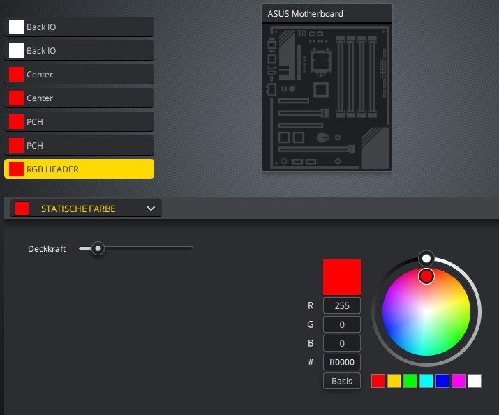 Es lässt sich aktuell mit dieser ersten Implementierung von Asus Aura Sync die LEDs eines Asus Mainboard steuern, mehr auch nicht. Weder der 5V RGB Header für externe LED Devices wie LED Strips etc noch Asus Grafikkarten lassen sich aktuell steuern, ausschließlich die internen Mainboard LEDs.