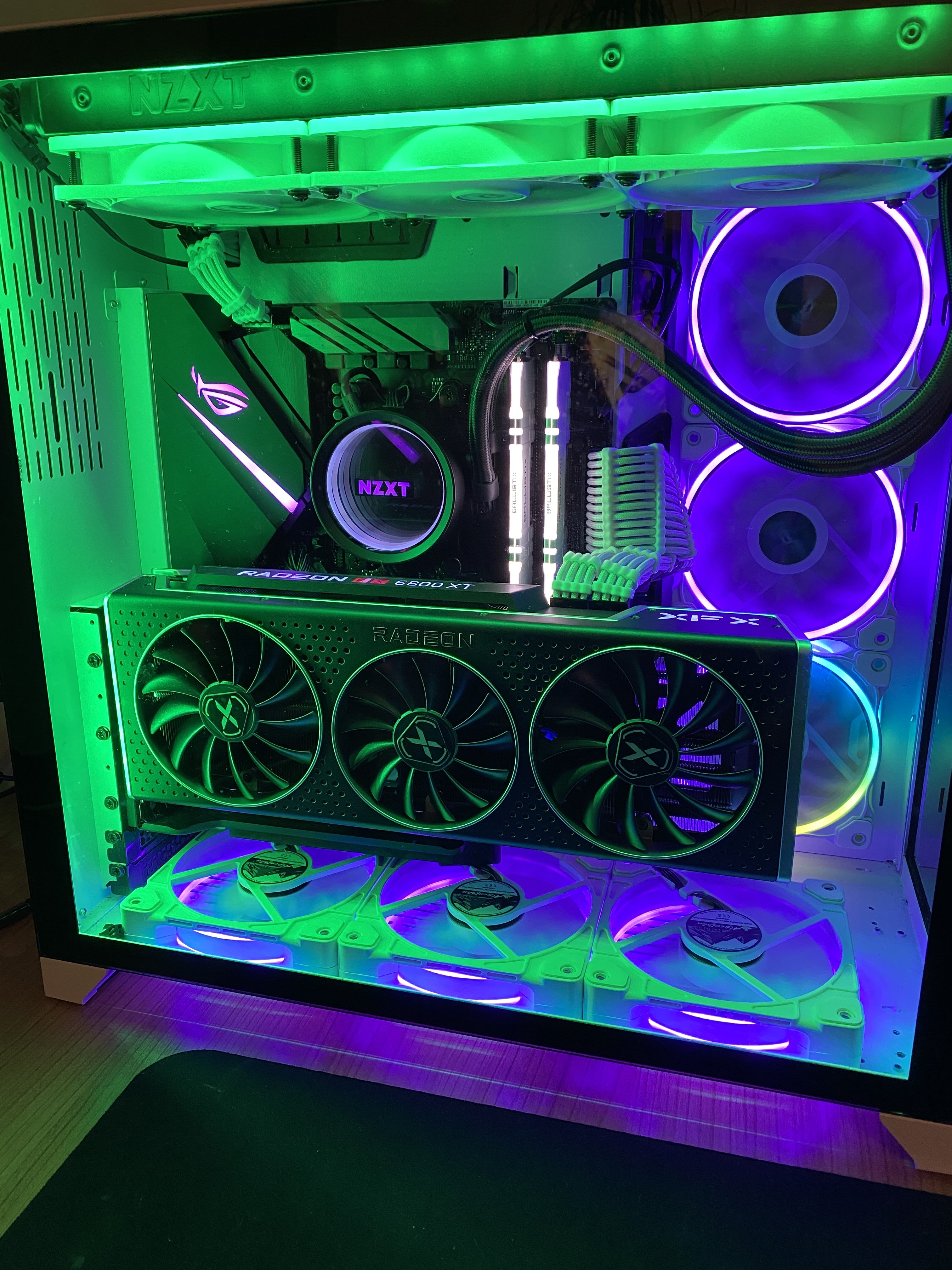 Diese sechs Lüfter habe ich alle miteinander kombiniert und sind gemeinsam auf einen 3 PIN Anschluss von meinem Asus X470-F Mainboard angeschlossen und werden über die Aura Software gesteuert.