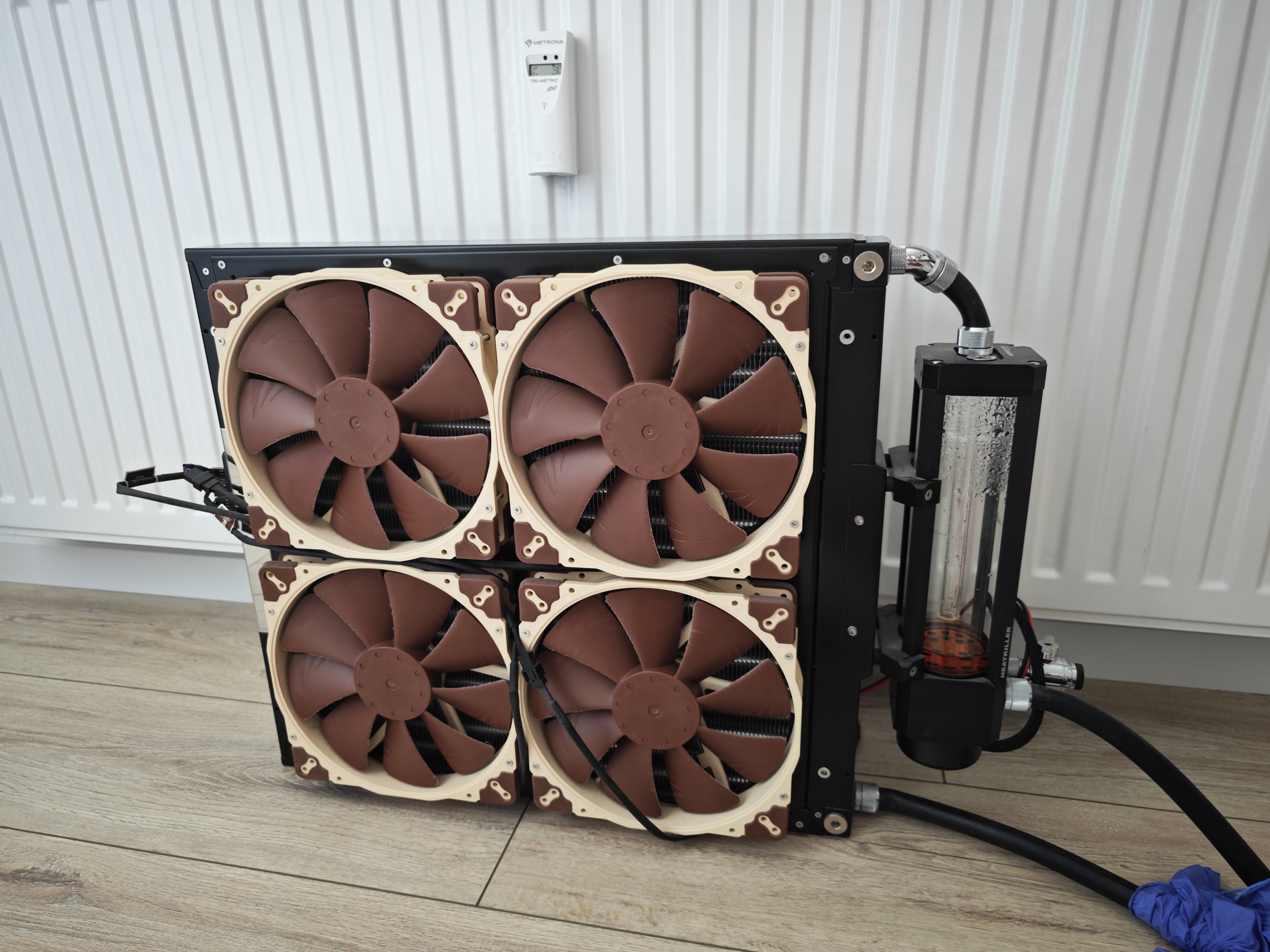 1. Die Wärmeleistung. Umso mehr Abwärme die Hardware erzeugt, umso stärker wird das Wasser beim Durchlauf erwärmt und in den Radiatoren auch wieder abgekühlt.
