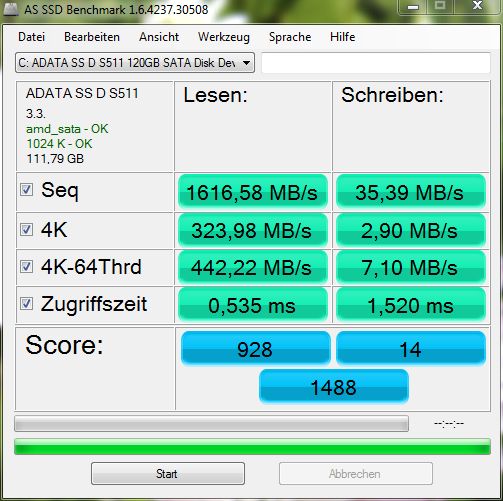Alle Treiber sind auf dem neusten Stand - auch das Bios. Angeschlossen ist die SSD am internen SATA2-Port.