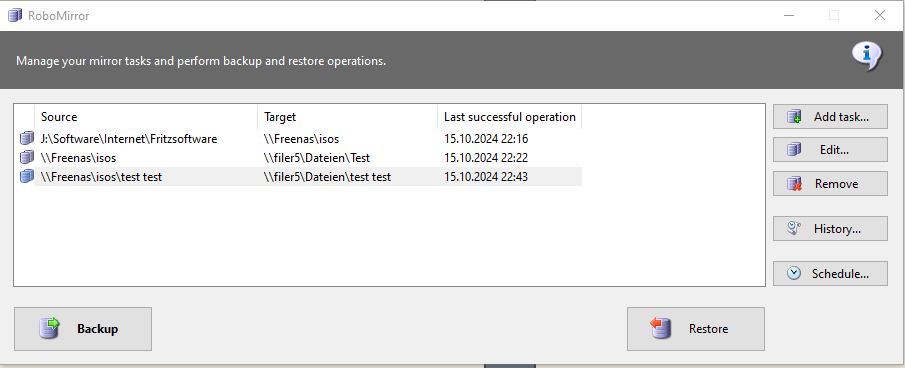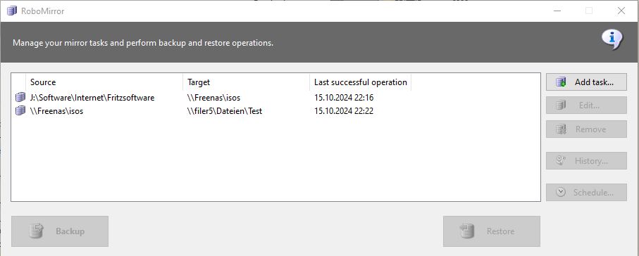 Auf den Windows Systemen die mit dem Hostnamen nichts anfangen können findet Robo Mirror mein Share nicht. Selbst gemountete Netzwerklaufwerke sind nicht erreichbar. Ich erinnere mich auch in der Vergangenheit das Robo sporadisch das share nicht gefunden hat.