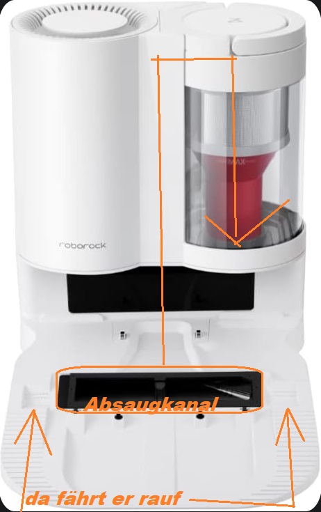 Wundert mich, dass die nicht gleich den ganzen Roboter einsaugt, wenn die los legt. Hab die immer auf volle Pulle laufen, volle Dauer. Hört sich an, als wenn n Düsenjet startet, wenn die Station absaugt.