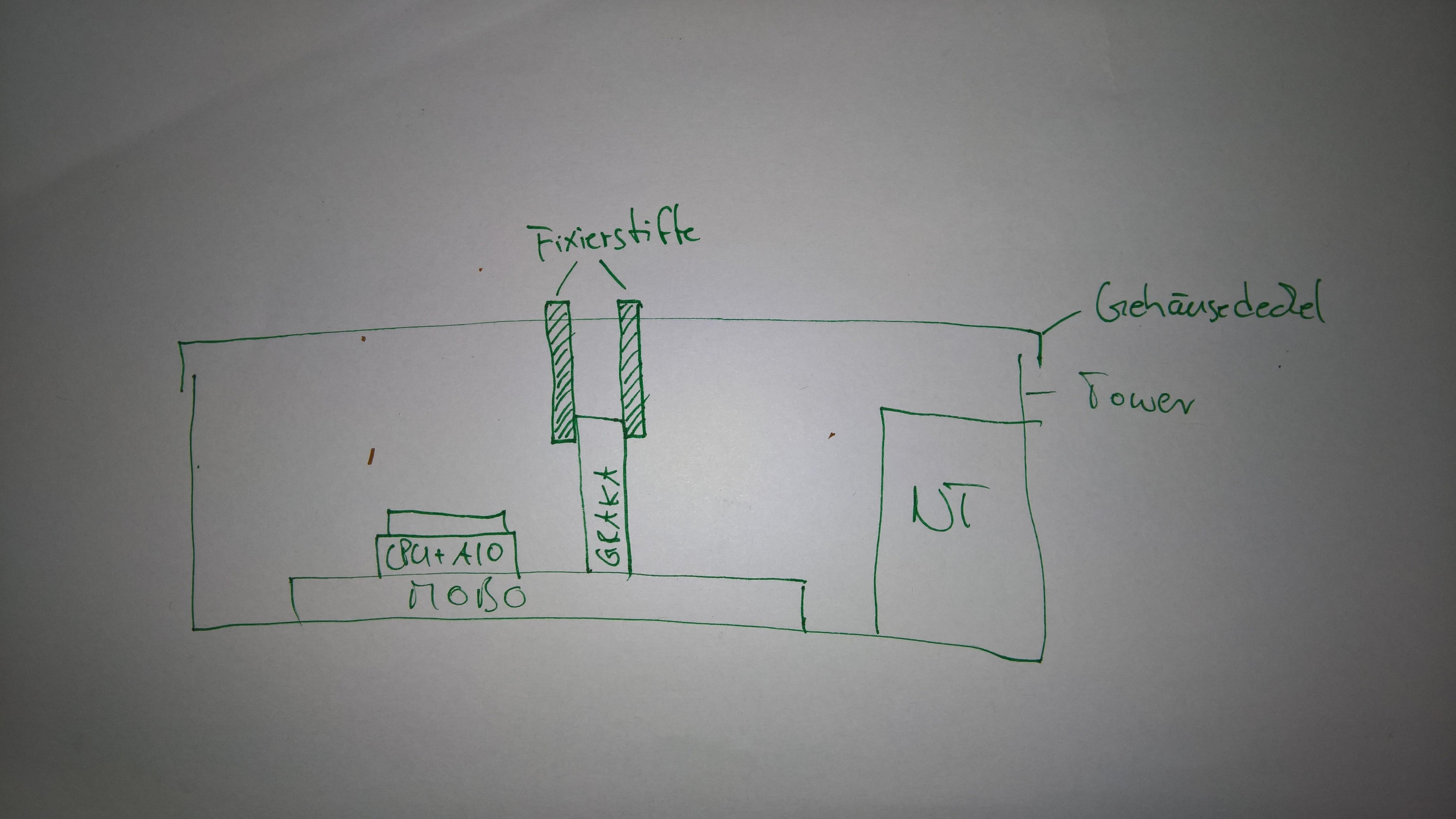 Dafür sind die ganzen Standard-Gehäuse viel zu labberig UND die Grafikkarte hängt in der Luft, so dass man sie vor einem Transport am Besten ausschraubt.
