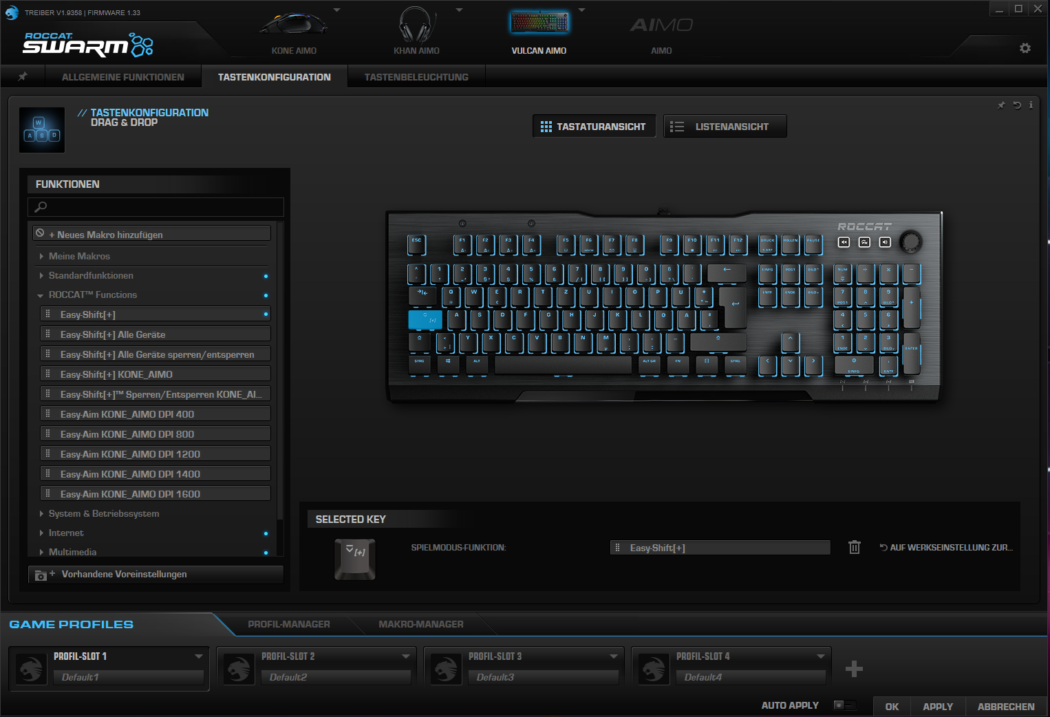 1. ich überlege mir eine Roccat Maus zuzulegen, da ich bereits in Besitzt einer Tastatur von Roccat bin frage ich mich gerade, ob ich auch mit der Easy Shift Taste von der Tastatur (im Standard Caps Lock) die Easy Shift Funktionen bei der Maus auslösen kann? oder arbeiten die beide getrennt?