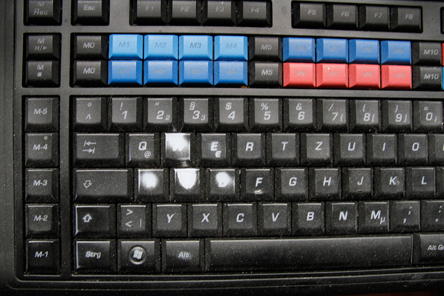 So sieht z.B. eine Roccat Tastatur nach ca. 6-8 Wochen Extreme-Gamer-Belastung aus: