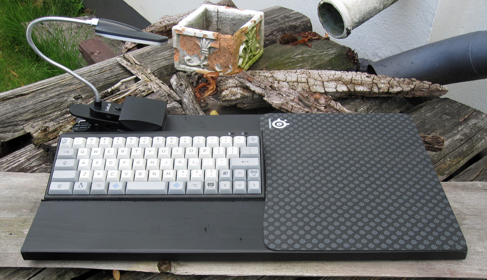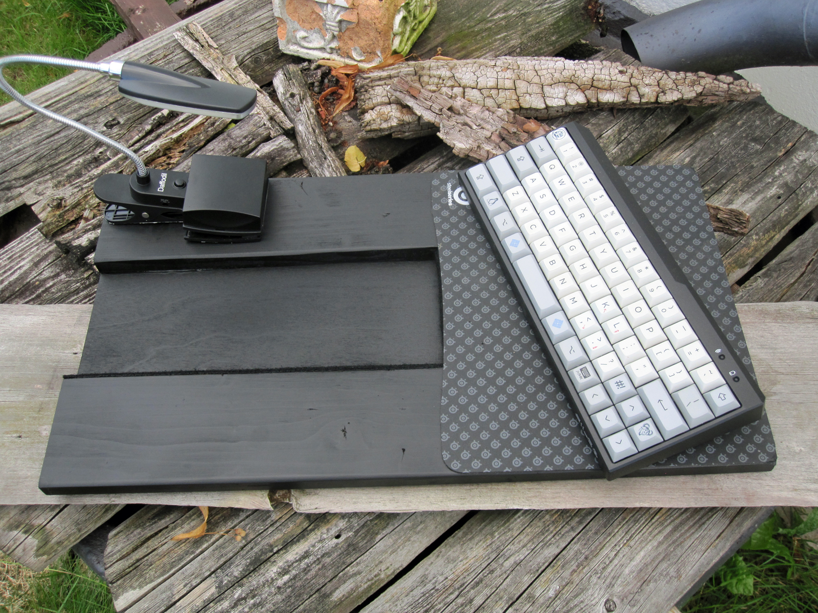 BT-Filco und Funkmaus plus Ledbeleuchtung mit Batterien als Option, keine Kabel, so mag ich das.