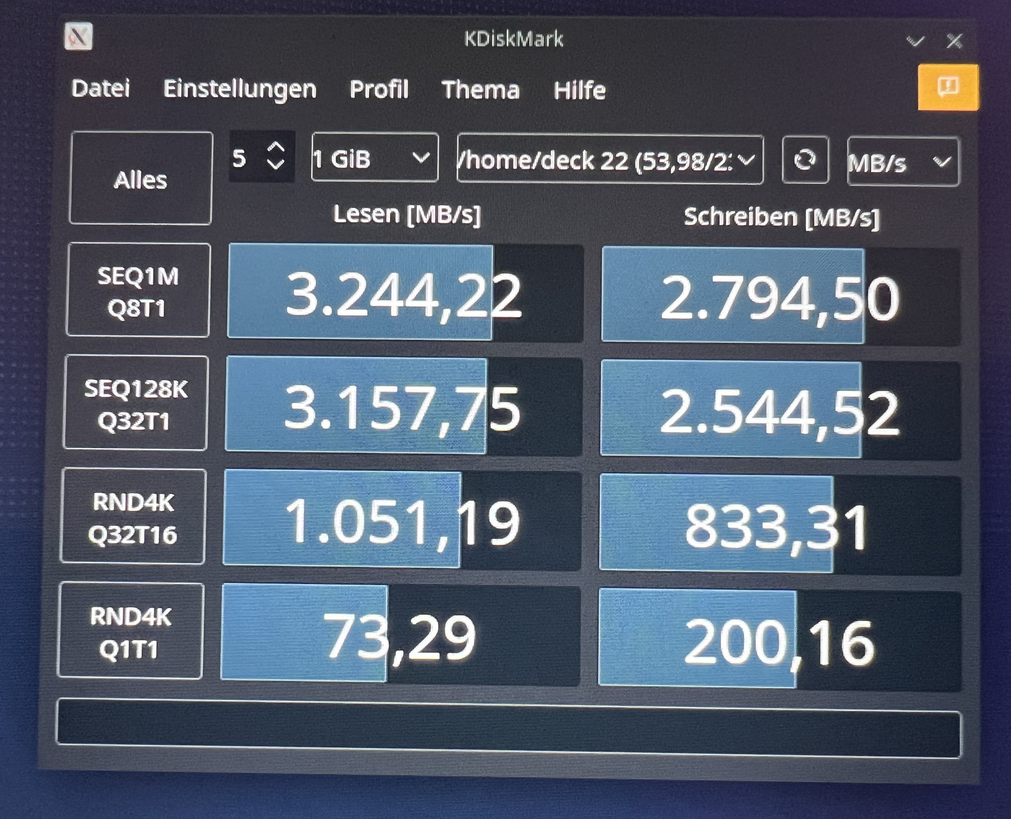 Also laut den Screenshots der Werte, in der News, ist meine verbaute 1TB Kioxia BG5 nicht viel langsamer, als die Sabrent. Getestet auf dem Steam Deck, im Desktop Modus.CDLABSRadonP... schrieb:Was sehr merkwürdig ist, denn eigentlich wurde die BG5 nicht erst gestern vorgestellt: