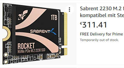 Auch die Verkauft Sabrent, nur das günstig... AmazonNeodar schrieb:Die 1TB 2230er zeigt allerdings auch, dass es im 2280er Format problemlos möglich wäre, auch günstige 8TB M.2 SSDs zu bauen. Die entsprechenden kapazitäten haben die heutigen Chips längst.