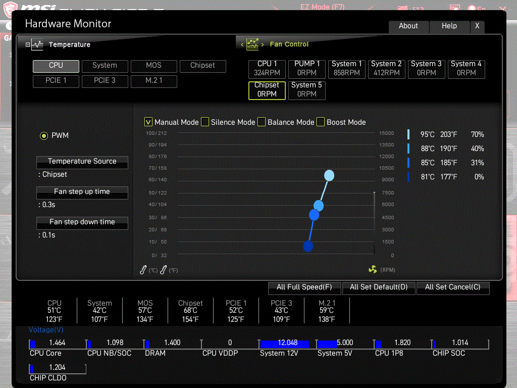 Also der kleine Chipset Lüfter auf meinem X570 Tomahawk ist selbst bei 1200-1400 RPM sehr leise / unhörbar... da machen die anderen 500 rpm lüfter im Gehäuse mehr krach.