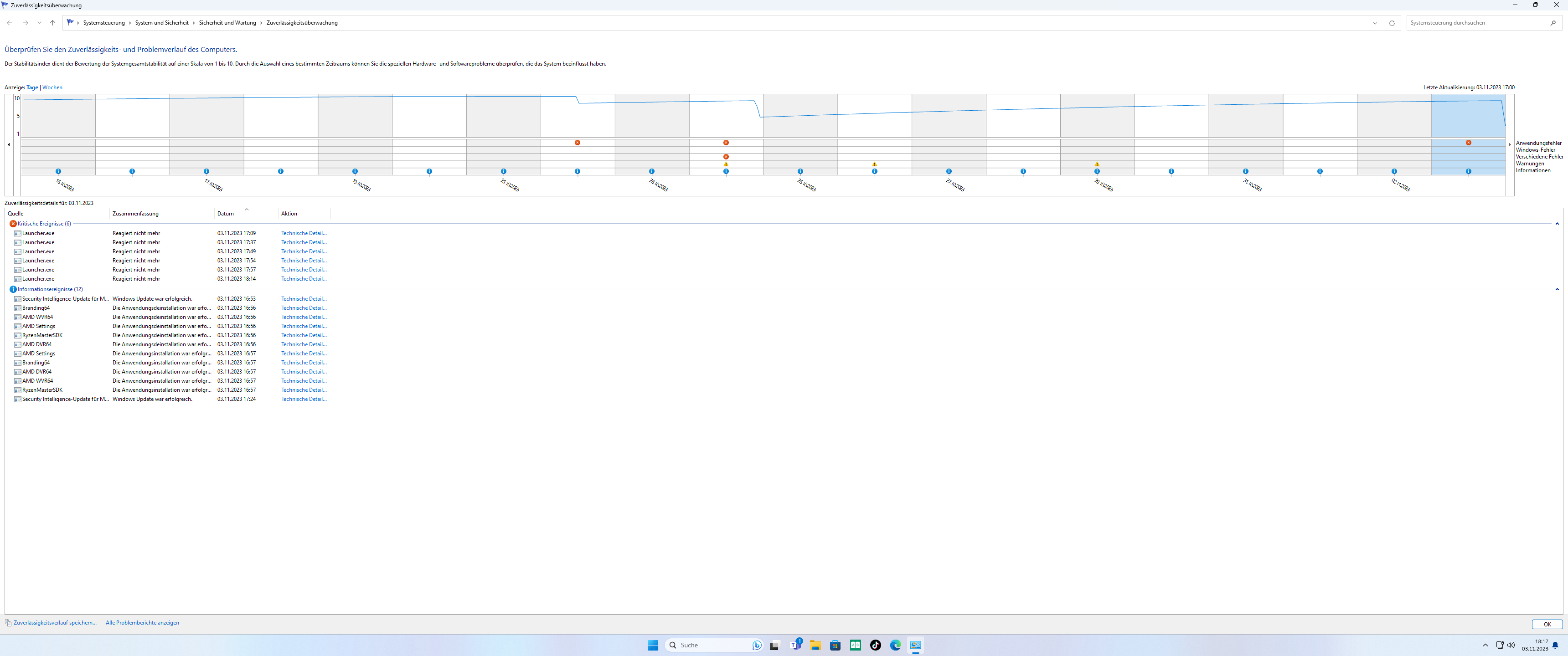 Es steht dort immer der Launcher reagiert nicht. In der Ereignidanzeige steht immer verbindung zu windows abgebrochen.