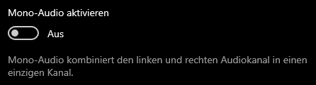 Aktiviere ich das Mono-Audio in Windows, wird logischerweise alles in Mono ausgegeben. Schwierig beim zocken.