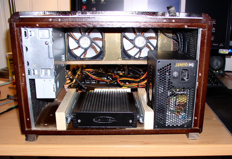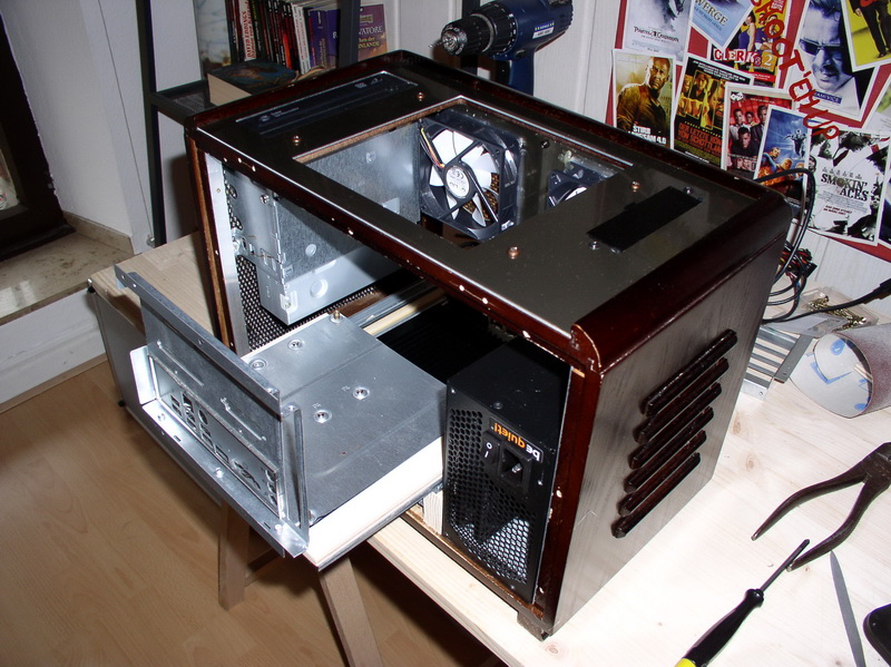 Unter die obere Klappe sollen das Laufwerk, das front panel und ein Sichtfenster verschwinden. In den Innenraum sollen noch Kaltlichtkathoden , die angehen sobald man den Deckel hochklappt (wie im Kühlschrank