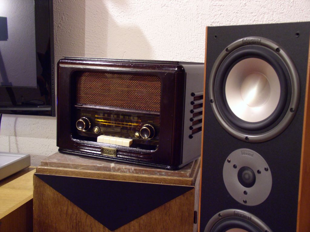 Erstes Problem: Das Gehäuse. Nach längerer Suche auf diversen Verkaufsportalen musste ich erkennen, das für (schöne) Röhrenradios , selbst für vollkommen zerstörte aus dem Sperrmüll gezogene, noch Unsummen bezahlt oder verlangt werden. Es sollte ja auch schön defekt sein, da ich es nicht übers Herz gebracht hätte so ein schönes altes Teil auszuschlachten. Viele sind aus Bakelit, was die Bearbeitung erschwert. Die Lösung war dann eine rel. moderne (90er) Kompaktanlage im retro-design von Soundmaster. Als Defekt verkauft für n Appel und ein Ei bekommen.