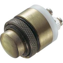 An der front habe ich die beiden Plastiktaster entfernt und durch zwei schöne auf alt gemachte Klingeltaster aus Messing ersetzt die als Power- und Reset-Taster dienen sollen.
