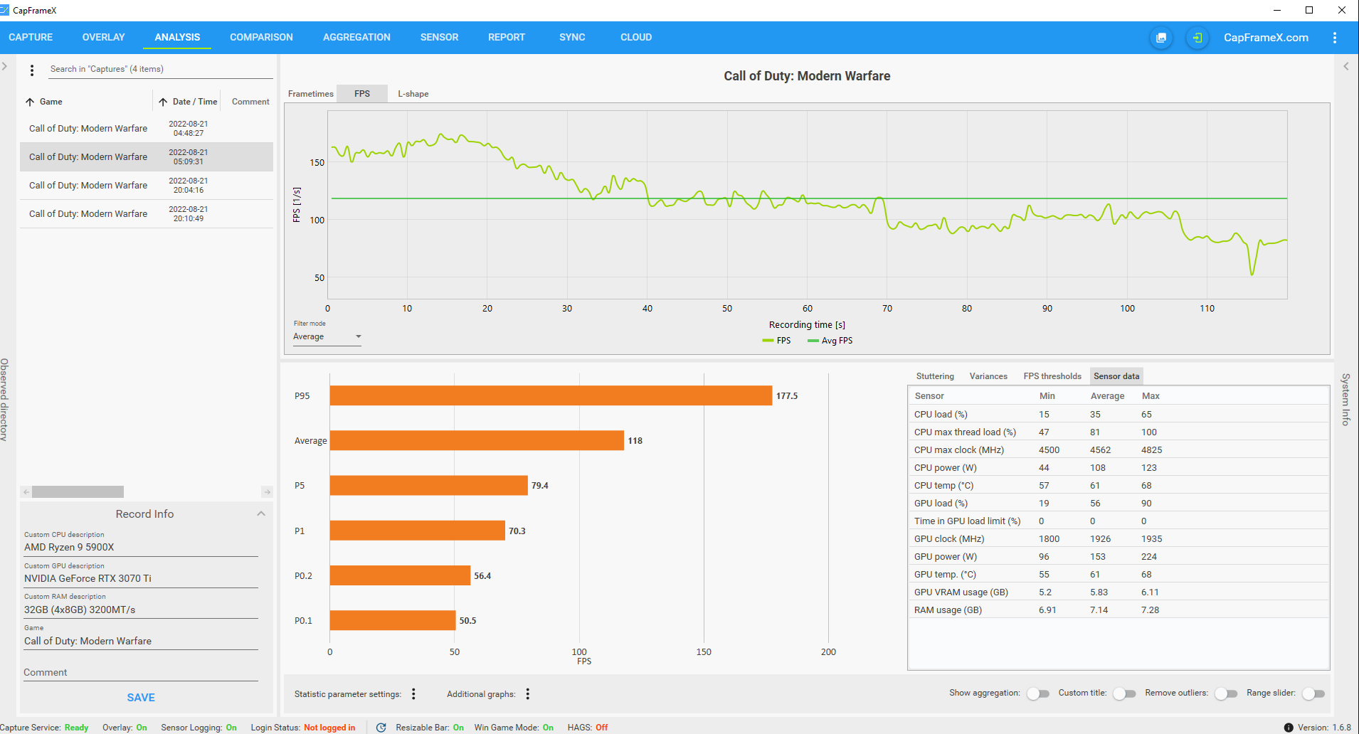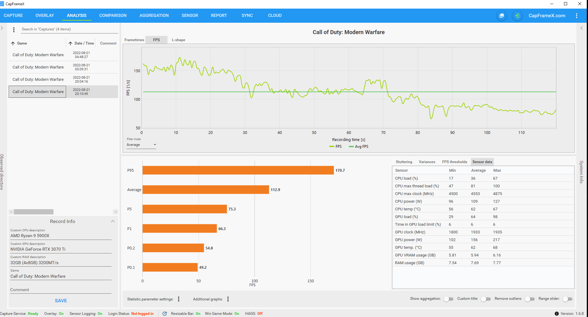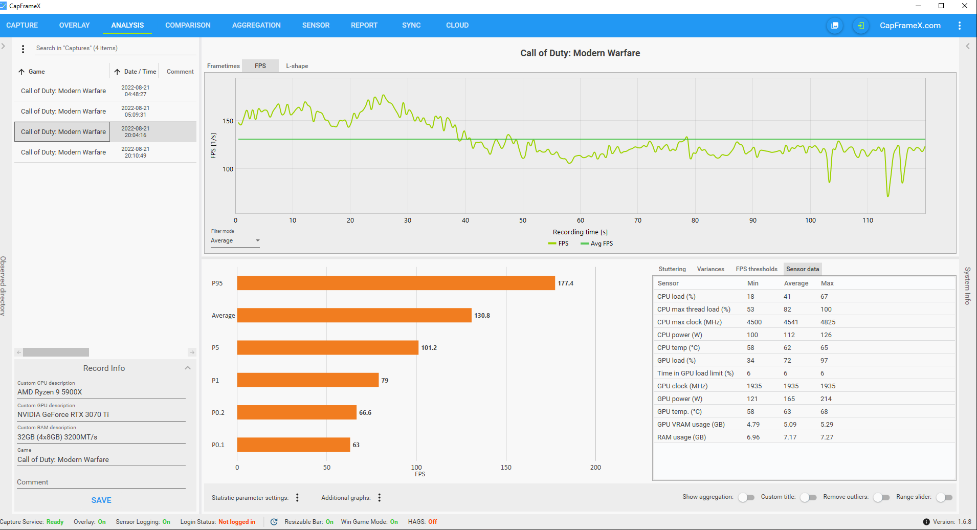 - 3x CapFrameX (im Anhang) (Bei diesen Anhängen kann man sehr gut sehen wie die FPS fallen)
