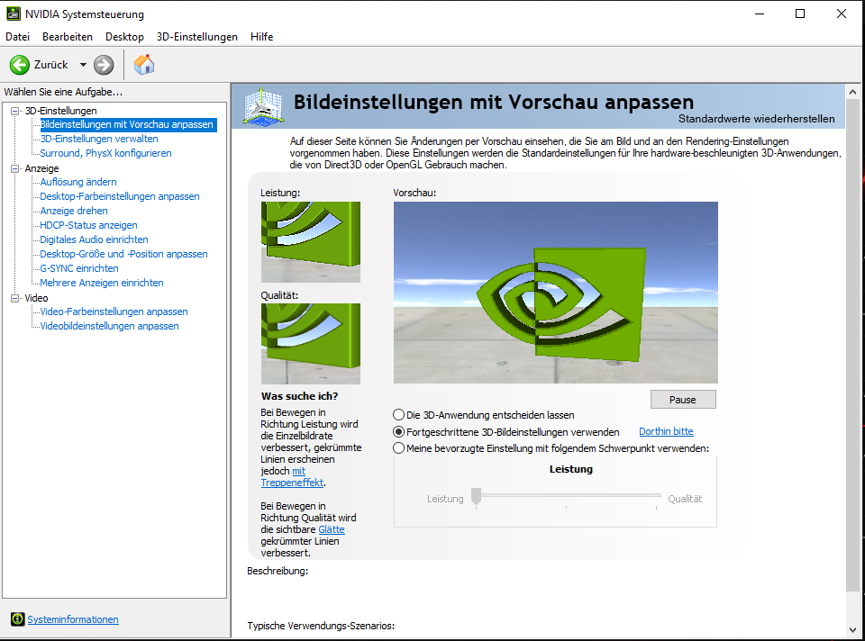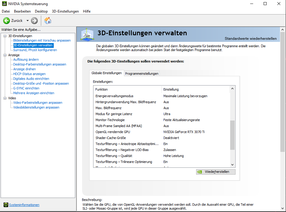 - Grafikeinstellungen im Windows aktiviert und getestet