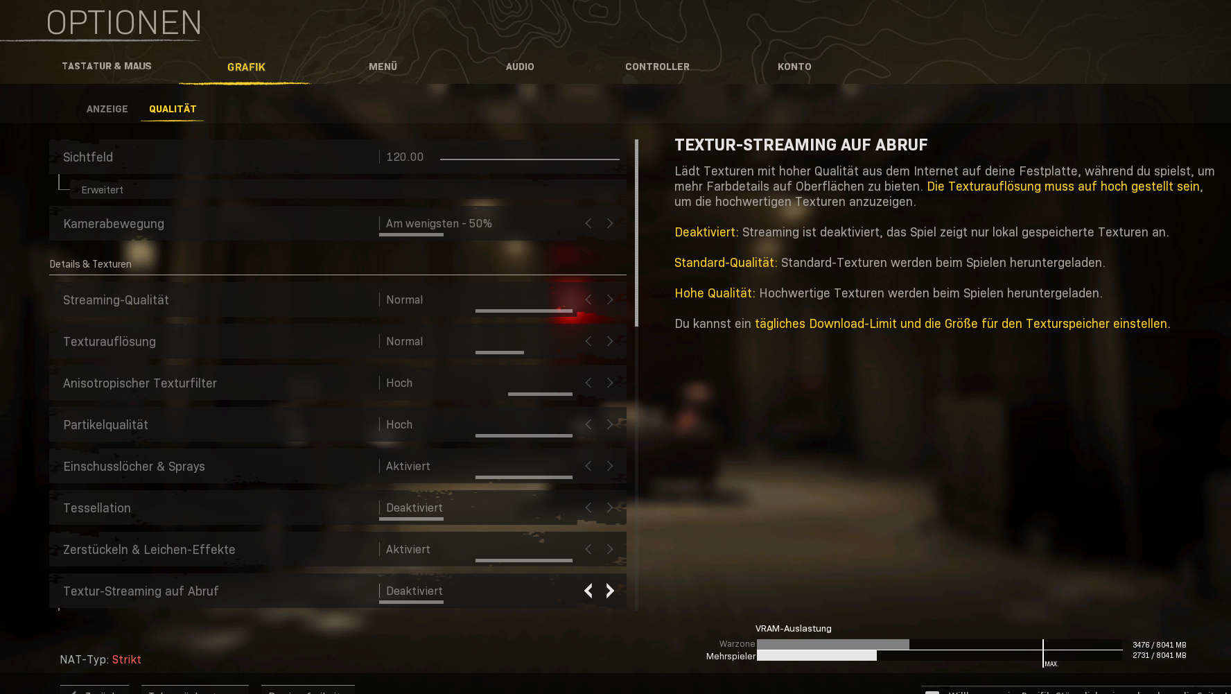 - Warzone Settings (alles probiert von High bis Low)