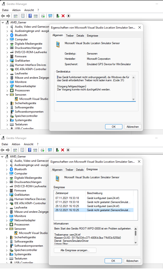 es werden keine Sensoren im Gerätemanager unter Windows 11 angezeigt,
