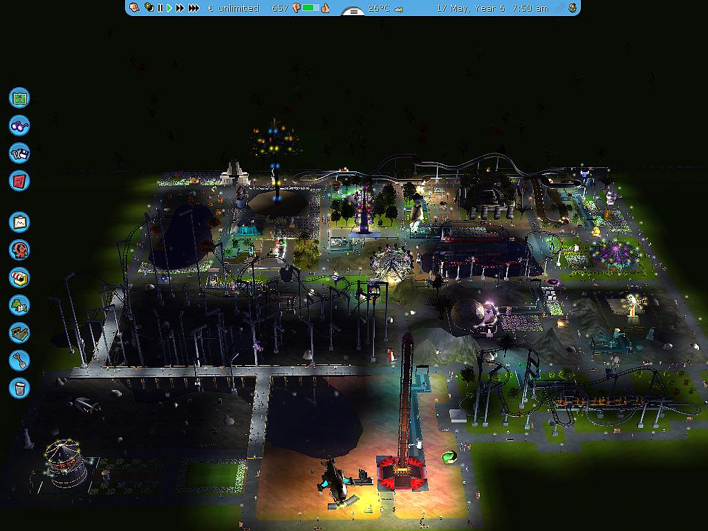 Acuh die schönen Effekte, wie z.B. das Wasser, Tag/Nacht wechsel, die schönen Feuerwerke, sehr gut animierte peeps(<-- so heißen glaube ich die Besucher in RCT3) man kann sogar sehen wie die "peeps" das Gaspedal im Autoscooter drücken! *Irre*