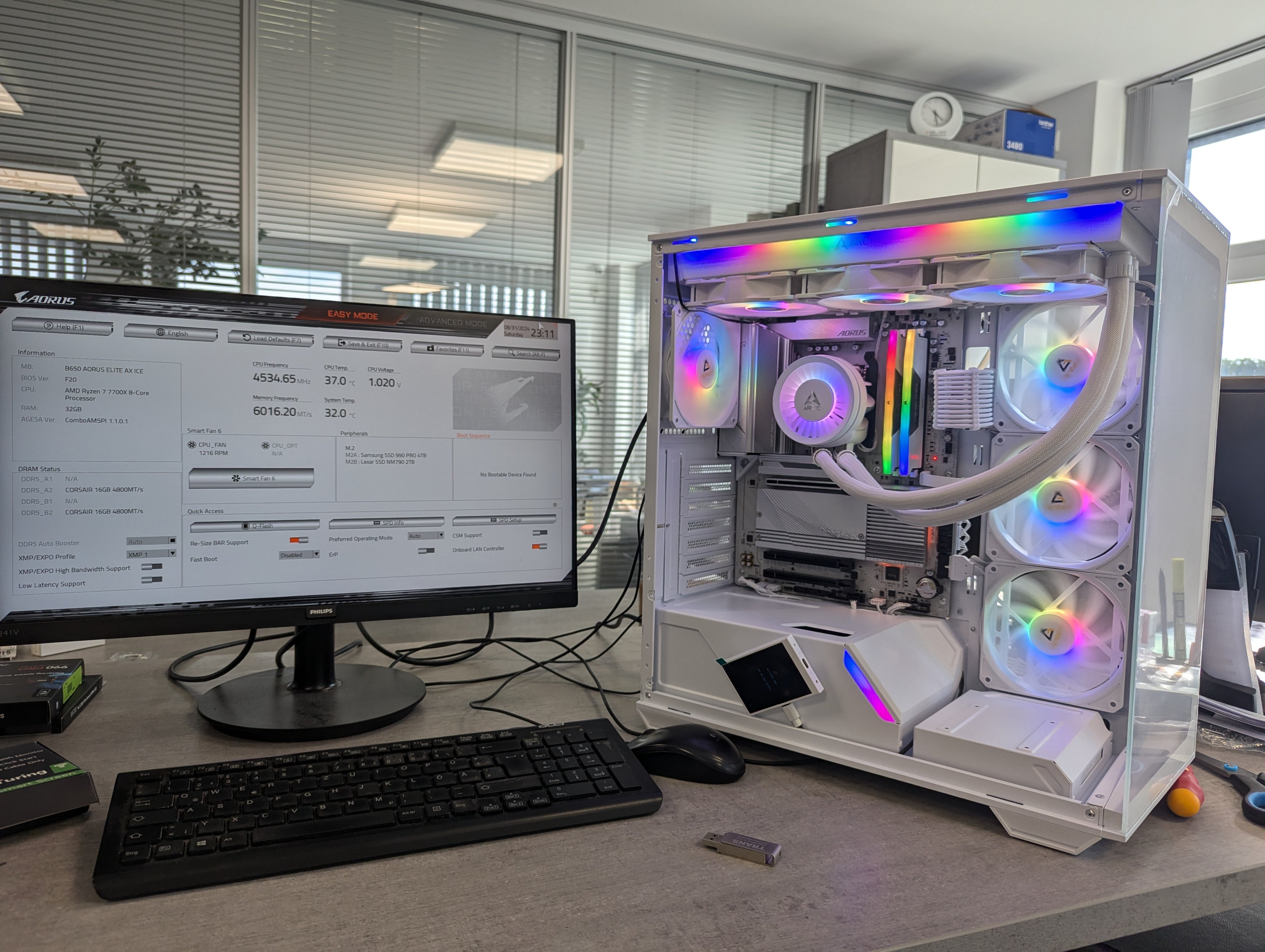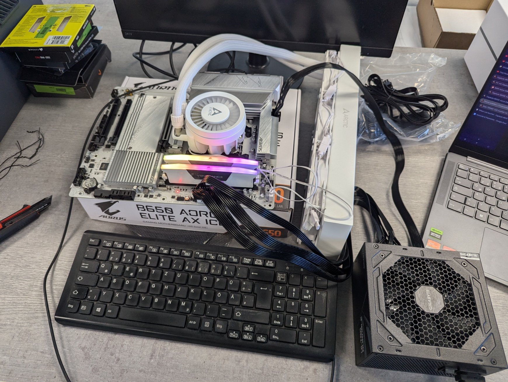 - Mainboard: Gigabyte AORUS Elite AX ICE AMD B650 So.AM5 DDR5 ATX